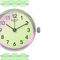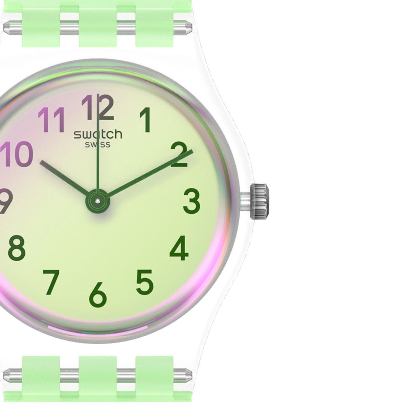 Наручные часы Swatch LK397. Эти современные и легкие женские часы относятся к коллекции Lady. С водозащитой до 30 метров они надежно защищают корпус от случайных брызг и капель дождя. Хезалитовое стекло, используемое в этих часах, обладает высокой прочностью и трудно разбивается; это легкий прозрачный пластик, который может прогибаться при ударах и не разлетается на осколки. Кроме того, хезалит устойчив к перепадам температуры и высокому давлению. Корпус часов выполнен из полимера, а механизм — кварцевый. Кварцевые часы обеспечивают большую точность по сравнению с механическими, с погрешностью хода около 20 секунд в месяц. Они не требуют завода, достаточно менять батарейку раз в несколько лет.