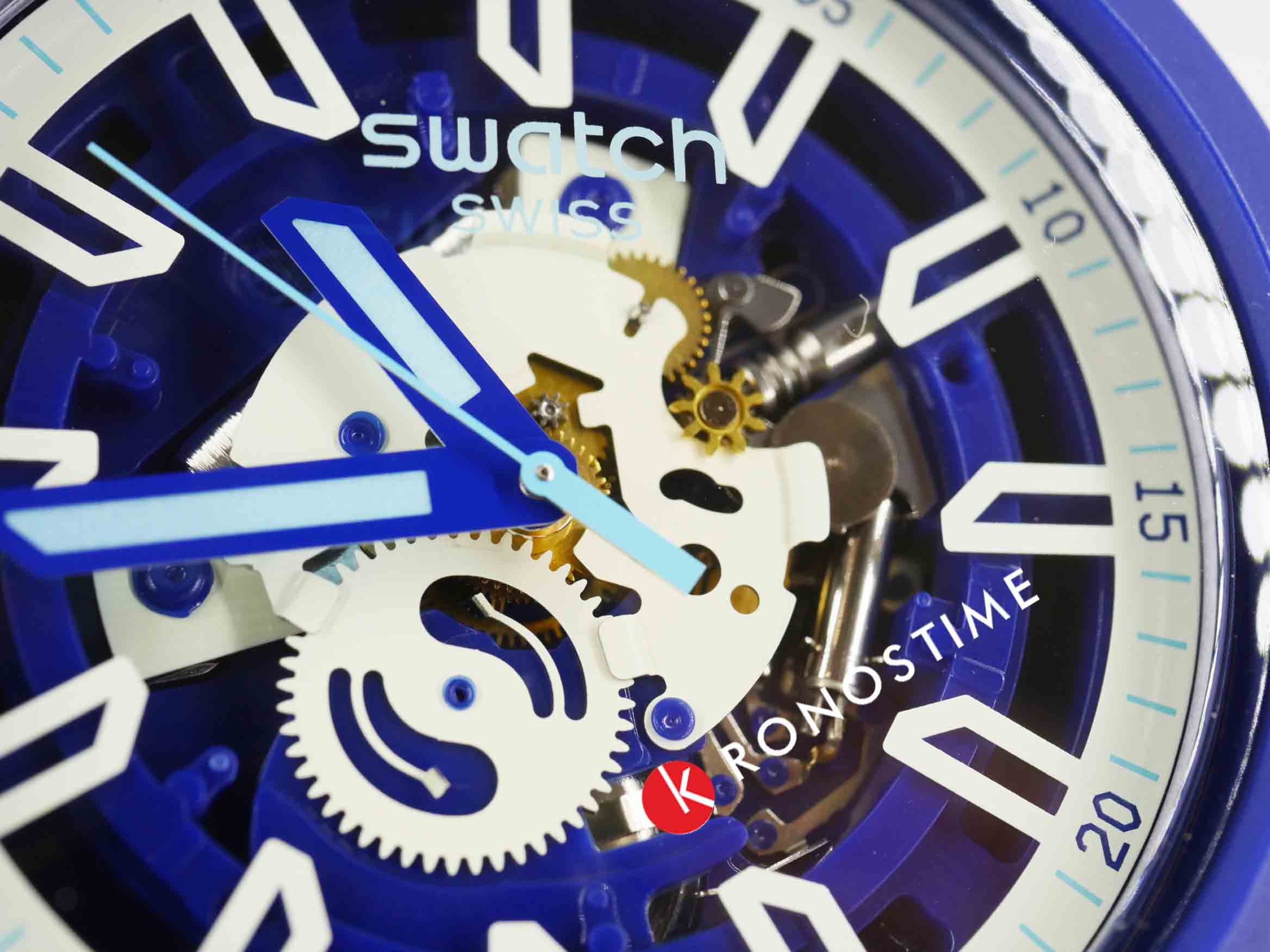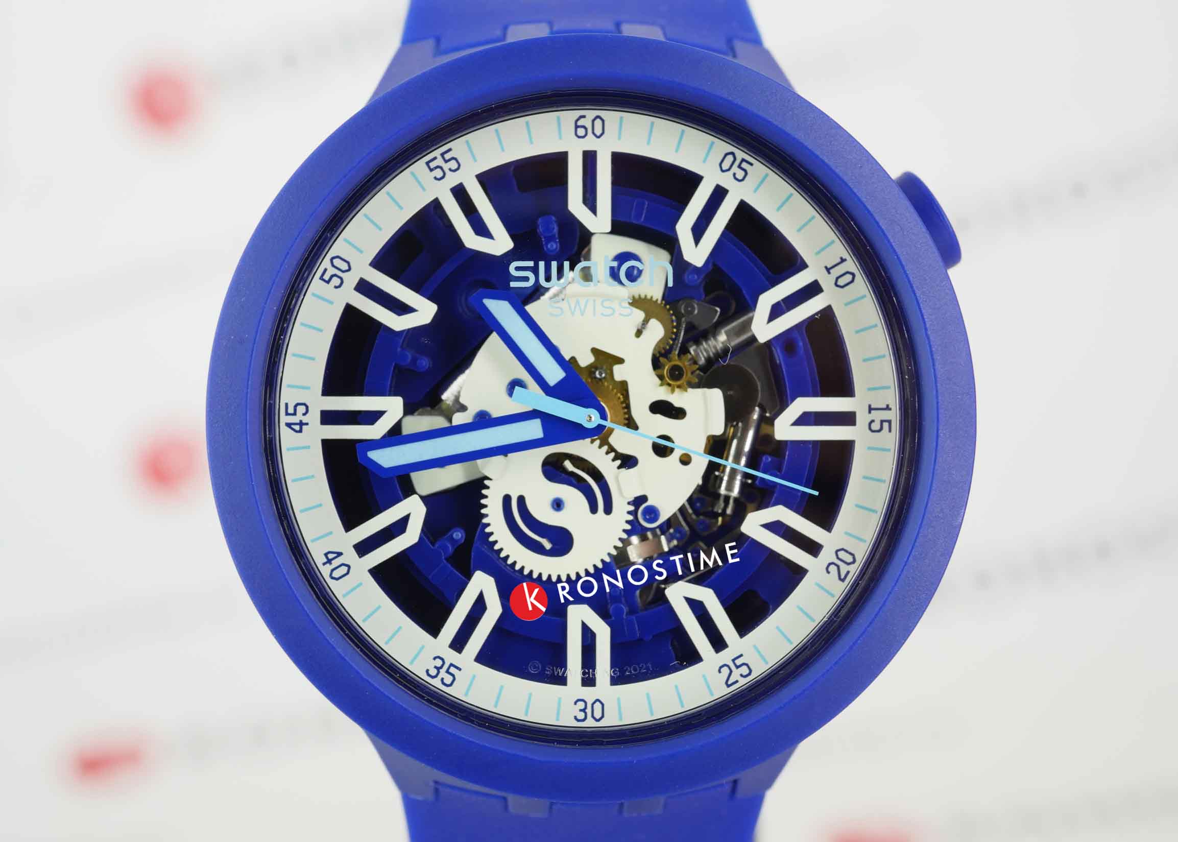 Часы Swatch SB01N102 — это стильный и современный аксессуар для тех, кто ценит лёгкость и комфорт. Часы идеально подойдут как для мужчин, так и для женщин. Корпус этих крупных часов выполнен из прочного матового пластика синего цвета, а ремешок — из силикона. На часовую, минутную стрелки нанесено люминесцентное покрытиеЛюминесцентное покрытиеПозволяет считывать показания времени в темноте. Производители наносят на стрелки, часовые индексы, безель или поверхность циферблата светонакопительный состав, дающий холодное свечение., которое светится в темноте, создавая необычное изображение. Водозащита 30 метров делает часы практичными для повседневного использования. Эти часы подойдут для повседневного ношения и станут ярким акцентом в вашем наряде.
