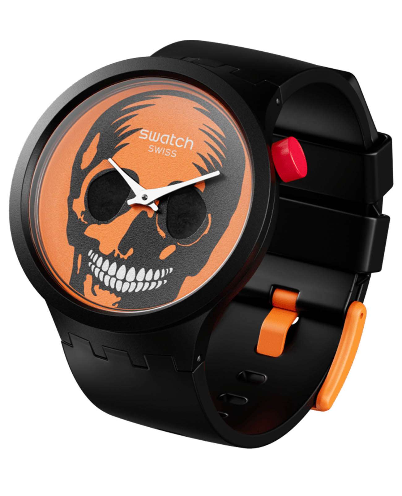 Часы Swatch SB03B700 — это стильный и современный аксессуар для тех, кто ценит лёгкость и комфорт. Часы идеально подойдут как для мужчин, так и для женщин. Эти часы прекрасно подойдут для вечеринки по случаю Хэллоуина. Персонаж под биостеклом строит безумные гримасы, зловеще вращая глазами с помощью специального механизма календарного колесика. Корпус из биокерамикиБиокерамикаБиокерамика — это материал, который на две трети состоит из керамики, на одну треть — из биопластика. Он сочетает в себе лучшие качества обоих материалов и обладает прочностью и шелковистой на ощупь текстурой., а ремешок — из однотонного матово-черного силикона. Водозащита 30 метров делает часы практичными для повседневного использования. Эти часы подойдут для повседневного ношения и станут ярким акцентом в вашем наряде.