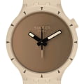 Часы Swatch SB03C101 — это стильный и современный аксессуар для тех, кто ценит лёгкость и комфорт. Часы идеально подойдут как для мужчин, так и для женщин. Корпус из биокерамикиБиокерамикаБиокерамика — это материал, который на две трети состоит из керамики, на одну треть — из биопластика. Он сочетает в себе лучшие качества обоих материалов и обладает прочностью и шелковистой на ощупь текстурой., а ремешок — из однотонного матово-бежевого силикона. Коричневый циферблат подчеркивает белые акценты на темных стрелках. Секундная стрелка, прообразом которой стала стрелка компаса, усиливает дух приключений. На часовую и минутную стрелки нанесено люминесцентное покрытиеЛюминесцентное покрытиеПозволяет считывать показания времени в темноте. Производители наносят на стрелки, часовые индексы, безель или поверхность циферблата светонакопительный состав, дающий холодное свечение., которое светится в темноте, создавая необычное изображение. Водозащита 30 метров делает часы практичными для повседневного использования. Эти часы подойдут для повседневного ношения и станут ярким акцентом в вашем наряде.
