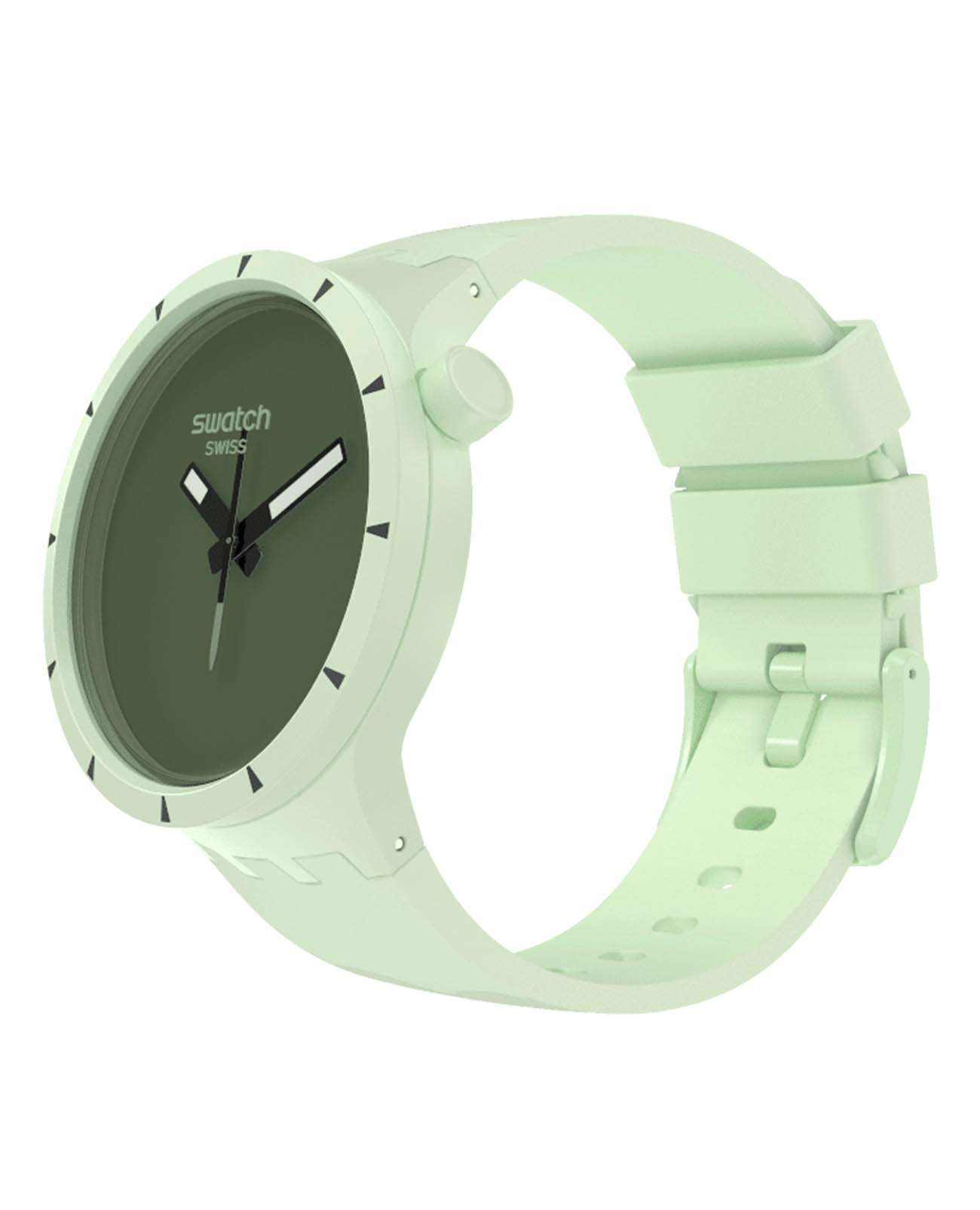 Часы Swatch SB03G100 — это стильный и современный аксессуар для тех, кто ценит лёгкость и комфорт. Часы идеально подойдут как для мужчин, так и для женщин. Корпус из биокерамикиБиокерамикаБиокерамика — это материал, который на две трети состоит из керамики, на одну треть — из биопластика. Он сочетает в себе лучшие качества обоих материалов и обладает прочностью и шелковистой на ощупь текстурой., а ремешок — из однотонного матово-зеленого силикона. Темно-зеленый циферблат подчеркивает белые акценты на темных стрелках. Секундная стрелка, прообразом которой стала стрелка компаса, усиливает дух приключений. На часовую и минутную стрелки нанесено люминесцентное покрытиеЛюминесцентное покрытиеПозволяет считывать показания времени в темноте. Производители наносят на стрелки, часовые индексы, безель или поверхность циферблата светонакопительный состав, дающий холодное свечение., которое светится в темноте, создавая необычное изображение. Водозащита 30 метров делает часы практичными для повседневного использования. Эти часы подойдут для повседневного ношения и станут ярким акцентом в вашем наряде.