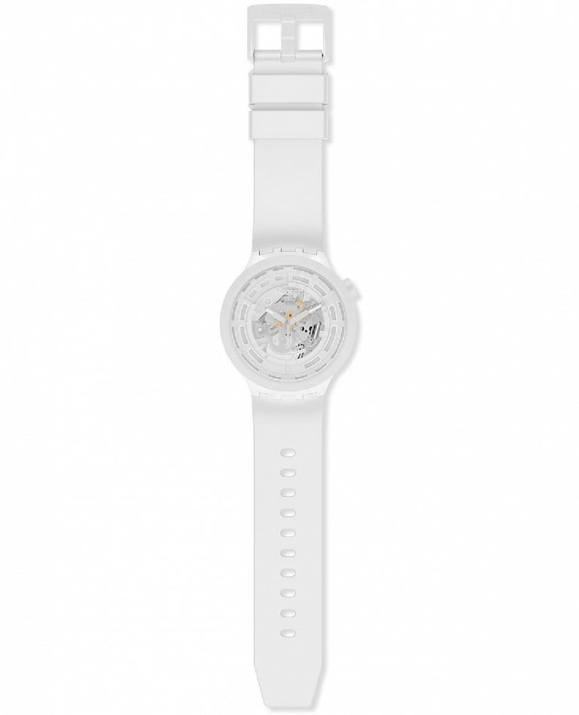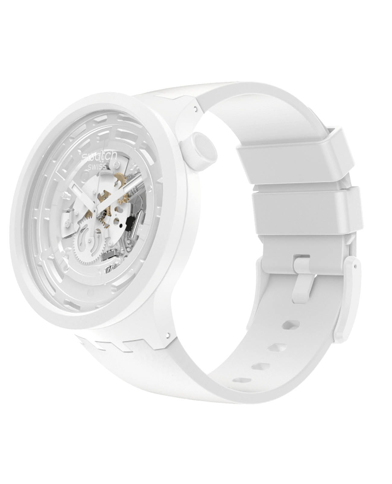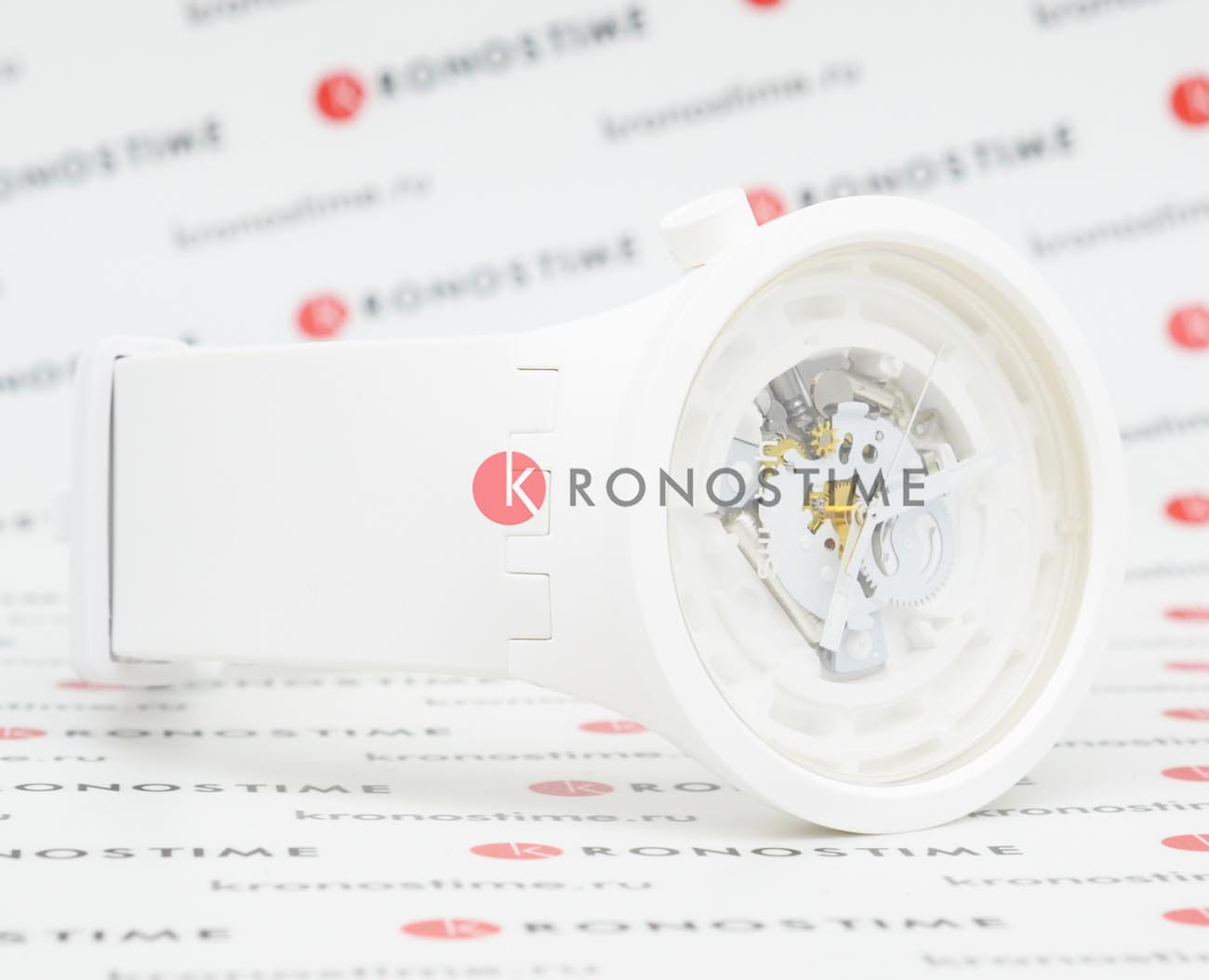 Часы Swatch SB03W100 — это стильный и современный аксессуар для тех, кто ценит лёгкость и комфорт. Часы идеально подойдут как для мужчин, так и для женщин. Прекрасный образец часов, выполненных полностью из материалов биологического происхождения: открытый механизм и биокерамикаБиокерамикаБиокерамика — это материал, который на две трети состоит из керамики, на одну треть — из биопластика. Он сочетает в себе лучшие качества обоих материалов и обладает прочностью и шелковистой на ощупь текстурой., которая создает ощущение шелковистости. Впечатляющий дизайн белого цвета — инновация в своем лучшем проявлении. На часовую, минутную стрелки нанесено люминесцентное покрытиеЛюминесцентное покрытиеПозволяет считывать показания времени в темноте. Производители наносят на стрелки, часовые индексы, безель или поверхность циферблата светонакопительный состав, дающий холодное свечение., которое светится в темноте, создавая необычное изображение. Водозащита 30 метров делает часы практичными для повседневного использования. Эти часы подойдут для повседневного ношения и станут ярким акцентом в вашем наряде.