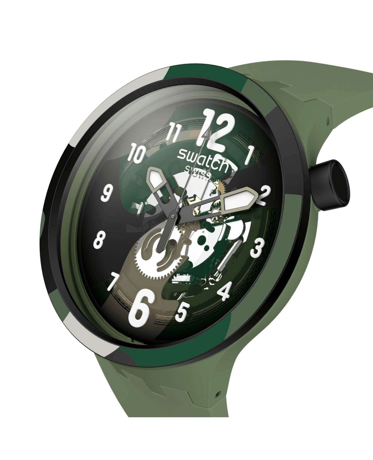 Часы Swatch SB05G108-5300 — это стильный и современный аксессуар для тех, кто ценит лёгкость и комфорт. Часы идеально подойдут как для мужчин, так и для женщин. Зеленые часы с камуфляжным рисунком и печатным циферблатом в корпусе, безелеБезельВнешний ободок, закрепляющий стекло. В спортивных часах так называется поворотное кольцо с делениями на циферблате, выполняет роль таймера – замеряет отрезки времени на шкале. Неподвижный безель – элемент декора. Однонаправленно вращающийся безель на дайверских часах позволяет фиксировать моменты погружения и выныривания на поверхность. и стекла из биоматериала. Эти прочные часы оснащены ремешком зеленого цвета спереди и камуфляжным рисунком с обратной стороны. На часовую, минутную и секундную стрелки нанесено люминесцентное покрытиеЛюминесцентное покрытиеПозволяет считывать показания времени в темноте. Производители наносят на стрелки, часовые индексы, безель или поверхность циферблата светонакопительный состав, дающий холодное свечение., которое светится в темноте, создавая необычное изображение. Эти часы имеют NFC модуль, поэтому это несомненно лучший способ оплачивать покупки. Водозащита 30 метров делает часы практичными для повседневного использования. Эти часы подойдут для повседневного ношения и станут ярким акцентом в вашем наряде.