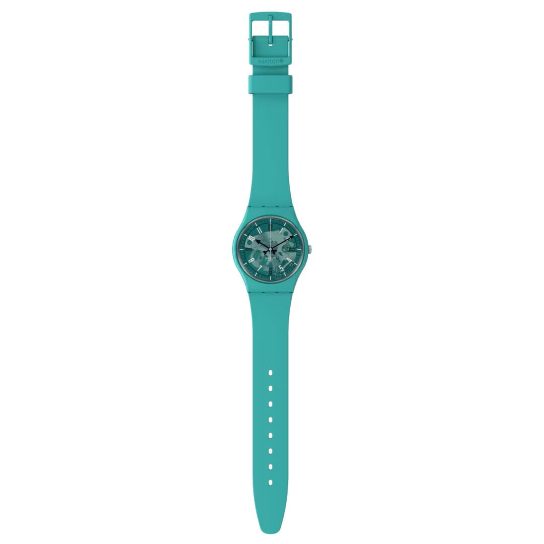 Часы Swatch SO28G108 — это стильный и современный аксессуар, который идеально подходит для повседневного ношения. Они имеют яркий и привлекательный дизайн, который выделяет их среди других моделей. Корпус часов выполнен из высококачественного биоматериала, что делает их легкими и удобными. Циферблат прозрачный с разноцветным принтом и черными стрелками придает этим часам спортивную нотку. Стекло часов изготовлено из прочного хезалита, который устойчив к царапинам и ударам, что гарантирует долговечность изделия. Ремешок часов выполнен из бирюзового силикона и имеет регулируемую длину, что позволяет удобно носить их на запястье. Внутри часов установлен надежный кварцевый механизм, который обеспечивает точность хода. Эти часы водонепроницаемы до 30 метров, что позволяет не беспокоиться о случайных брызгах или дождевых каплях. Swatch SO28G108 — это идеальный выбор для тех, кто ценит сочетание стиля, комфорта и функциональности в одном аксессуаре.