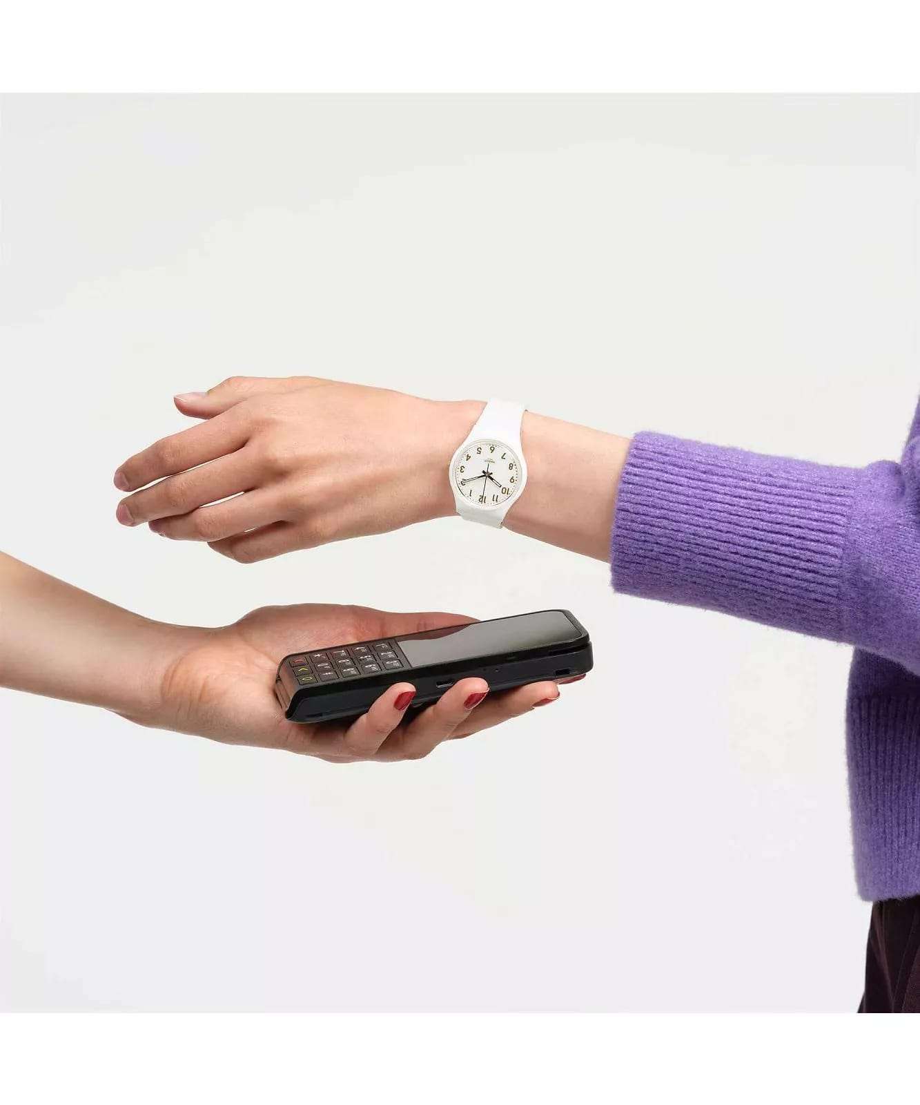 Часы Swatch Gent Biosourced Swatch Pay! SO28W111-5300 — это стильный и современный аксессуар, который идеально подходит для повседневного ношения. Эти часы поддерживают функцию SwatchPAY!. Они имеют белый корпус из биоматериала и циферблат с золотистыми арабскими цифрами и стрелками с люминесцентным покрытиемЛюминесцентное покрытиеПозволяет считывать показания времени в темноте. Производители наносят на стрелки, часовые индексы, безель или поверхность циферблата светонакопительный состав, дающий холодное свечение., которые светятся в темноте. Циферблат защищен органическим стеклом из хезалита, устойчивым к царапинам и ударам, что гарантирует долговечность изделия.  Внутри часов установлен надежный кварцевый механизм, который обеспечивает точность хода. Эти часы водонепроницаемы до 30 метров, что позволяет не беспокоиться о случайных брызгах или дождевых каплях. Ремешок часов  выполнен из силикона и имеет регулируемую длину, застежка классическая из пластика. Swatch SO28W111-5300 — это идеальный выбор для тех, кто ценит сочетание стиля, комфорта и функциональности в одном аксессуаре.