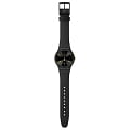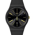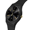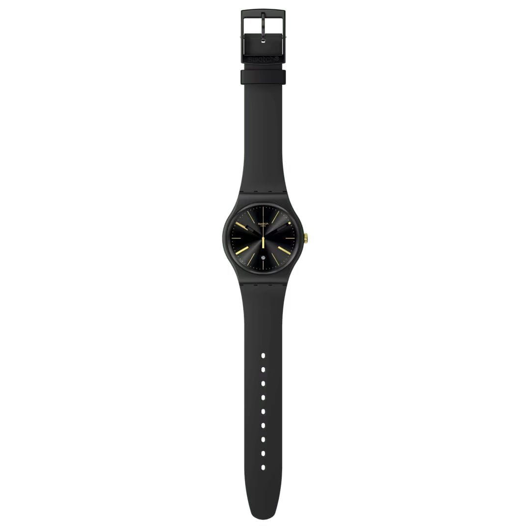 Часы Swatch SO29B403 — эффектный и надежный аксессуар. Современный взгляд на классику. Эти часы имеют черный циферблат с золотыми индексами и черными стрелками часов и минут, которые светятся в темноте, так как имеют люминесцентное покрытиеЛюминесцентное покрытиеПозволяет считывать показания времени в темноте. Производители наносят на стрелки, часовые индексы, безель или поверхность циферблата светонакопительный состав, дающий холодное свечение.. Корпус и стекло из биоматериала. Матовый черный ремешок из биоматериала с соответствующей петлей и пряжкой завершает их неповторимый вид. Внутри часов установлен надежный кварцевый механизм, который обеспечивает точность хода. Эти часы водонепроницаемы до 30 метров, что позволяет не беспокоиться о случайных брызгах или дождевых каплях. Swatch SO29B403 — это идеальный выбор для тех, кто ценит сочетание стиля, комфорта и функциональности в одном аксессуаре.
