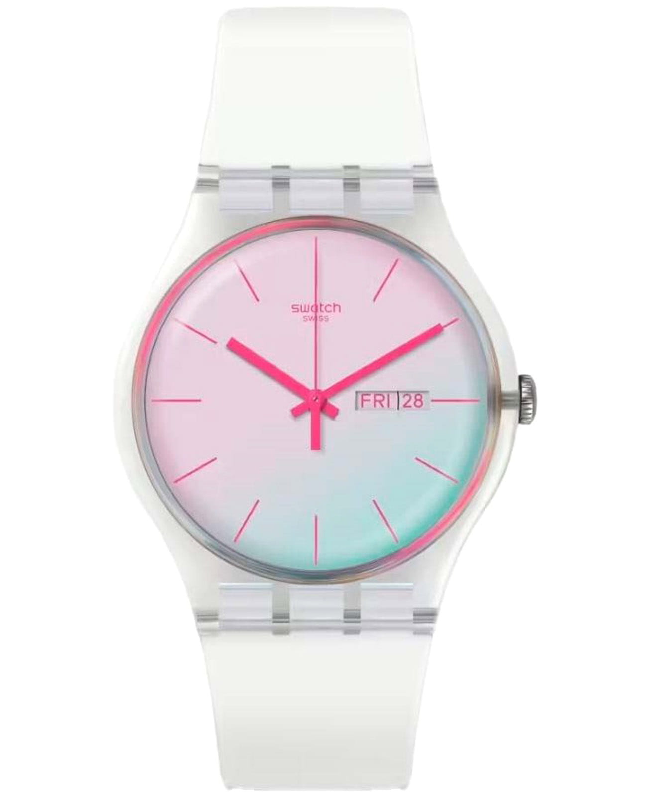 Часы Swatch SO29K704-S14 — стильный и надежный аксессуар. Эти часы имеют белый циферблат с розовыми индексами и стекло Solar Spectrum. У них прозрачный корпус из биоматериала, а также белый ремешок и петля. Окошко даты и дня недели с розовыми буквами на уровне 3 часов. Ремешок из силикона на стандартной застёжке. Внутри часов установлен надежный кварцевый механизм, который обеспечивает точность хода. Эти часы водонепроницаемы до 30 метров, что позволяет не беспокоиться о случайных брызгах или дождевых каплях. Swatch SO29K704-S14 — это идеальный выбор для тех, кто ценит сочетание стиля, комфорта и функциональности в одном аксессуаре.
