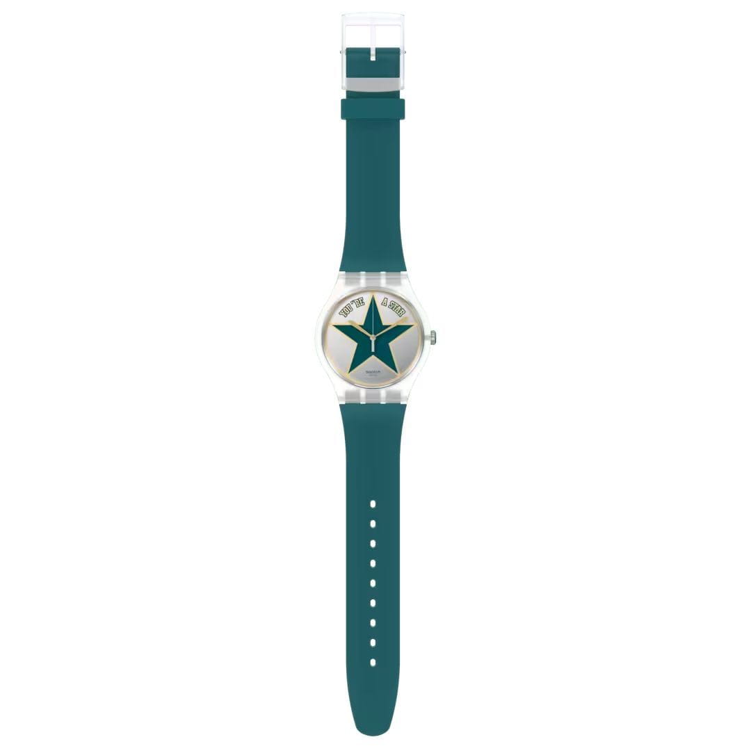 Часы Swatch SO29Z119 — стильный и надежный аксессуар. Модель часов выпущена ко Дню отца, имеет надпись "YOU’RE A STAR" ("ТЫ ЗВЕЗДА"). Корпус матовый полупрозрачный из биоматериала, циферблат серый зеркальный с зелено-золотой звездой. Зеленый ремешок из силикона с двумя однотонными тренчиками. В комплекте также четыре дополнительных тренчика из прозрачного силикона с принтом в виде эмоджи. Циферблат покрыт биостеклом. Ремешок на классической застежке. Внутри часов установлен надежный кварцевый механизм, который обеспечивает точность хода. Эти часы водонепроницаемы до 30 метров, что позволяет не беспокоиться о случайных брызгах или дождевых каплях. Swatch SO29Z119 — это идеальный выбор для тех, кто ценит сочетание стиля, комфорта и функциональности в одном аксессуаре.