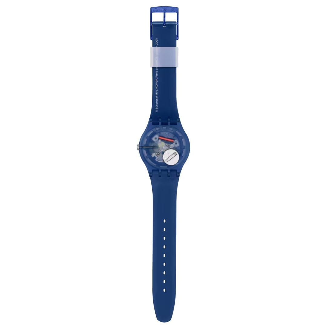 Часы Swatch SO29Z136 — эффектный и надежный аксессуар. Эти часы из коллекции Swatch x Tate Gallery имеют прозрачный матовый корпус темно-синего цвета из биоматериала и органическое стекло с белыми напечатанными индексами. Циферблат и силиконовый ремешок украшены принтом "Женщина и птица в лунном свете" Хуана Миро, а стрелки часов и минут выполнены в синем цвете. Прозрачная матовая петля имеет напечатанный логотип Tate Gallery. "Женщина и птица в лунном свете" Хуан Миро, 1949 год. Ремешок на стандартной застёжке. Внутри часов установлен надежный кварцевый механизм, который обеспечивает точность хода. Эти часы водонепроницаемы до 30 метров, что позволяет не беспокоиться о случайных брызгах или дождевых каплях. Swatch SO29Z136 — это идеальный выбор для тех, кто ценит сочетание стиля, комфорта и функциональности в одном аксессуаре.