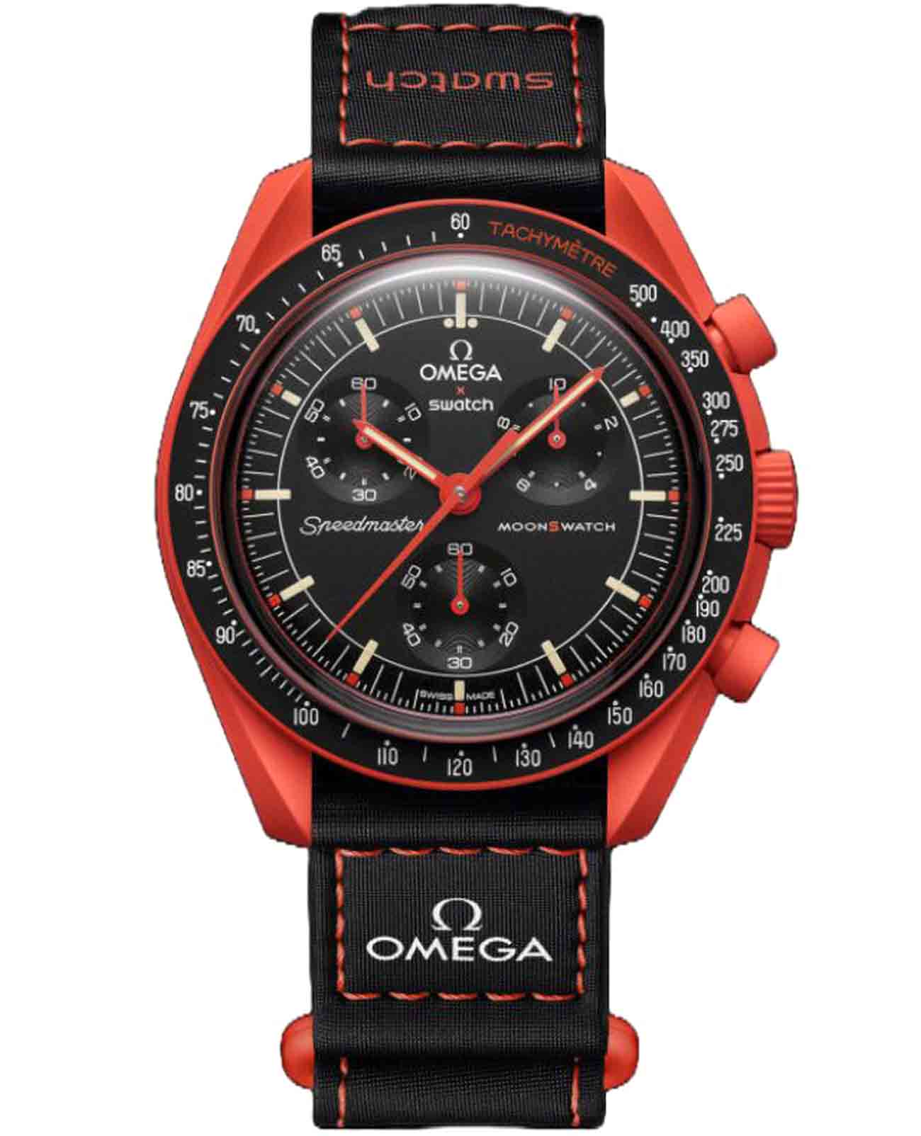 Швейцарские мужские часы Swatch x Omega Bioceramic Moonswatch Mission on Earth: Lava SO33O100 с хронографом
