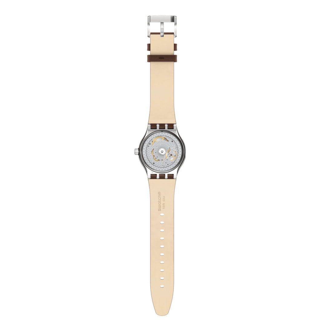 Часы Swatch SY23S410 — это стильный и современный аксессуар для тех, кто ценит лёгкость и комфорт. Корпусов этих часов из матовой нержавеющей стали элегантно дополняет коричневый кожаный ремешок со стальной пряжкой. Синий циферблат этих автоматических часов может похвастаться эффектным белым принтом и необычными индексами в виде никелевых наклеек для индикации времени. На часовую, минутную стрелки нанесено люминесцентное покрытиеЛюминесцентное покрытиеПозволяет считывать показания времени в темноте. Производители наносят на стрелки, часовые индексы, безель или поверхность циферблата светонакопительный состав, дающий холодное свечение., которое светится в темноте, создавая необычное изображение. Водозащита 30 метров делает часы практичными для повседневного использования. Эти часы подойдут для повседневного ношения и станут ярким акцентом в вашем наряде.