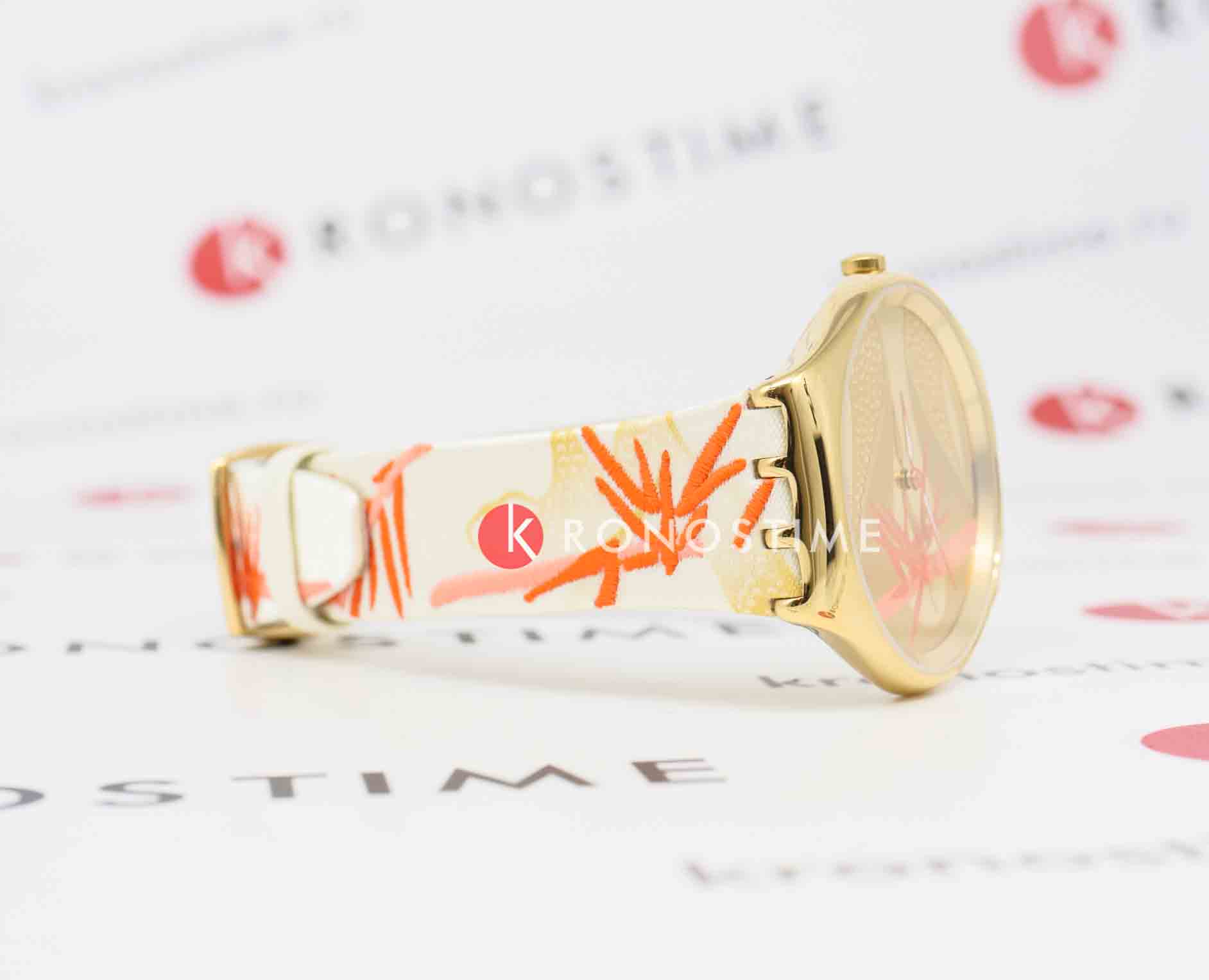 Часы Swatch SYXS158 — это стильный и современный аксессуар для тех, кто ценит лёгкость и комфорт. Часы идеально подойдут как для мужчин, так и для женщин. Эти ультратонкие часы посвящены Году Змеи. Циферблат, покрытый минеральным стекломМинеральное стеклоМинеральное стекло представляет собой искусственно выращенный минерал кварца. Такое стекло отличается особой устойчивостью к повреждениям и царапинам. Уступает по некоторым качествам сапфировому стеклу. из матового золота с разноцветным принтом и оранжевыми часовой и минутной стрелками, которые светятся в темноте благодаря люминесцентному покрытиюЛюминесцентное покрытиеПозволяет считывать показания времени в темноте. Производители наносят на стрелки, часовые индексы, безель или поверхность циферблата светонакопительный состав, дающий холодное свечение.. Блестящий корпус из нержавеющей стали с золотистым PVDPVDУльтратонкое покрытие наносится в технике вакуумного напыления, сочетает в себе нитрид титана особой прочности со слоем золота или оксида хрома. Несёт в себе декоративную или защитную функцию. покрытием дополнен ремешком из кожи и текстиля цвета слоновой кости с оранжевой вышивкой и золотым принтом. Петля из кожи и текстиля цвета слоновой кости и блестящая пряжка из нержавеющей стали с золотистым PVDPVDУльтратонкое покрытие наносится в технике вакуумного напыления, сочетает в себе нитрид титана особой прочности со слоем золота или оксида хрома. Несёт в себе декоративную или защитную функцию. покрытием дополняют часы. Водозащита 30 метров делает часы практичными для повседневного использования. Эти часы подойдут для повседневного ношения и станут ярким акцентом в вашем наряде.