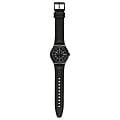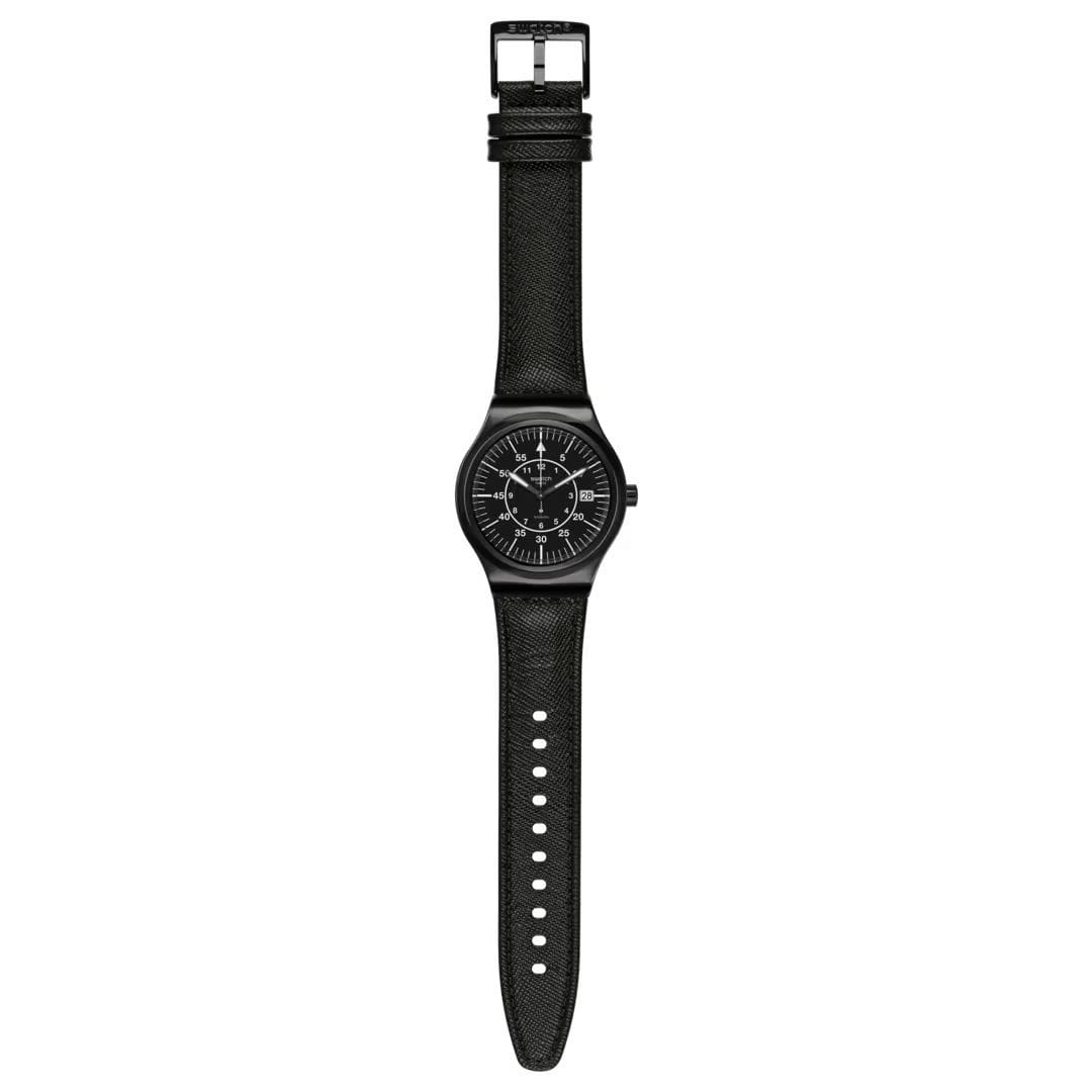 Часы Swatch Irony Sistem51 YIB400 - это модель часов Swatch из коллекции Sistem 51, выпущенная под названием Sistem Slate. Часы имеют круглый корпус диаметром 42 мм и высотой 13,80 мм, изготовленный из нержавеющей стали с PVD-покрытиемPVDУльтратонкое покрытие наносится в технике вакуумного напыления, сочетает в себе нитрид титана особой прочности со слоем золота или оксида хрома. Несёт в себе декоративную или защитную функцию.. Циферблат черного цвета выполнен в стиле "Baumuster B" с арабскими цифрами и стрелками в форме мечей. Стрелки с люминесцентным покрытиемЛюминесцентное покрытиеПозволяет считывать показания времени в темноте. Производители наносят на стрелки, часовые индексы, безель или поверхность циферблата светонакопительный состав, дающий холодное свечение.. Модель оснащена калибром Swatch Sistem51 Date и имеет открытую заднюю крышку, позволяющую наблюдать за работой механизма. Стекло часов изготовлено из плексигласа, а водонепроницаемость составляет 30 метров. Sistem Slate YIB400 представляет собой стильные механические часы с автоподзаводом, сочетающие в себе классический дизайн и современные технологии производства Swatch.
