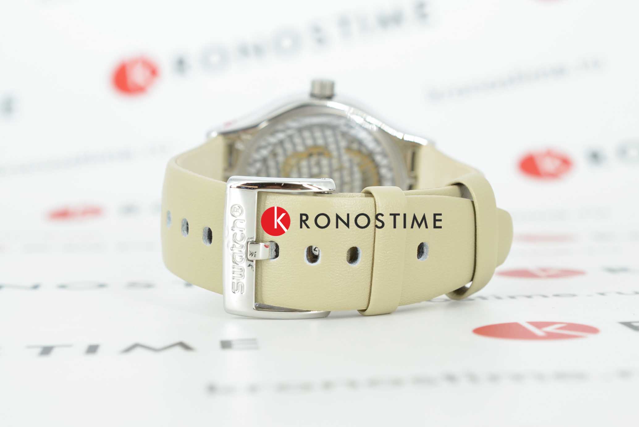 Часы Swatch YIS434 — это стильный и современный аксессуар для тех, кто ценит надежность и комфорт. Эти механические часы имеют полированный бежевый циферблат и индексы. Стрелки с люминесцентным покрытиемЛюминесцентное покрытиеПозволяет считывать показания времени в темноте. Производители наносят на стрелки, часовые индексы, безель или поверхность циферблата светонакопительный состав, дающий холодное свечение., светятся в темноте. Окошко календаря расположено в положении 6 часов. Блестящий корпус из нержавеющей стали, а через заднюю крышку с цифровым принтом просматривается механизм SISTEM51. Модель оснащена автоматическим механизмом Sistem51, который состоит всего из 51 детали и имеет запас хода 90 часов. Дополняет модель бежевый ремешок из кожи с классической застежкой. Водозащита 30 метров позволяет защитить корпус от случайных брызг или капель дождя, что делает часы практичными для повседневного использования. Эти часы станут ярким акцентом в вашем образе.