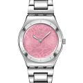 Модель Swatch YLS234G — это утончённые женские часы с изысканным дизайном и надёжным механизмом. Корпус диаметром 33 мм выполнен из нержавеющей стали, подчёркивая элегантность и долговечность модели. Циферблат украшен изящным цветочным узором, а стрелки и метки покрыты люминесцентным покрытиемЛюминесцентное покрытиеПозволяет считывать показания времени в темноте. Производители наносят на стрелки, часовые индексы, безель или поверхность циферблата светонакопительный состав, дающий холодное свечение., что обеспечивает хорошую читаемость в условиях недостаточного освещения.