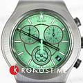 Часы Swatch YVM407G — это стильный и современный аксессуар для тех, кто ценит лёгкость и комфорт. Этот стильный хронографХронографФункция позволяет измерять отрезки времени с особой точностью: часы, минуты, секунды. Верным признаком хронографа является наличие на циферблате 3 дополнительных окошек-счётчиков. оснащен зеленым циферблатом с радиальной полировкой, черными часовой и минутной стрелками-скелетонами. Кончик зеленой секундной стрелки хронографа светится в темноте благодаря люминесцентному покрытиюЛюминесцентное покрытиеПозволяет считывать показания времени в темноте. Производители наносят на стрелки, часовые индексы, безель или поверхность циферблата светонакопительный состав, дающий холодное свечение.. Стрелки мини-циферблатов черные. На внешнее кольцо темно-серой расцветки нанесен черно-зеленый принт с минутной шкалой. Часовые индексы светятся в темноте благодаря люминесцентному покрытиюЛюминесцентное покрытиеПозволяет считывать показания времени в темноте. Производители наносят на стрелки, часовые индексы, безель или поверхность циферблата светонакопительный состав, дающий холодное свечение., а между отметками 4 и 5 часов расположено черное окошко календаря с белым принтом. Матированный корпус, безельБезельВнешний ободок, закрепляющий стекло. В спортивных часах так называется поворотное кольцо с делениями на циферблате, выполняет роль таймера – замеряет отрезки времени на шкале. Неподвижный безель – элемент декора. Однонаправленно вращающийся безель на дайверских часах позволяет фиксировать моменты погружения и выныривания на поверхность., пушеры и браслет с застёжкой «бабочка»Застёжка "бабочка"Такой вид застёжки дополняется предохранителями, помогающими избежать случайного раскрытия браслета. Обладают изящным исполнением. выполнены из нержавеющей стали с черным PVDPVDУльтратонкое покрытие наносится в технике вакуумного напыления, сочетает в себе нитрид титана особой прочности со слоем золота или оксида хрома. Несёт в себе декоративную или защитную функцию. покрытием. Водозащита 30 метров делает часы практичными для повседневного использования. Эти часы подойдут для повседневного ношения и станут ярким акцентом в вашем наряде.
