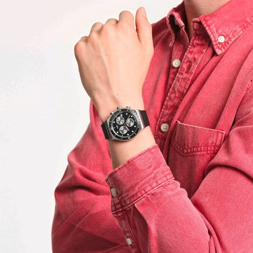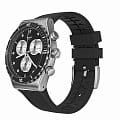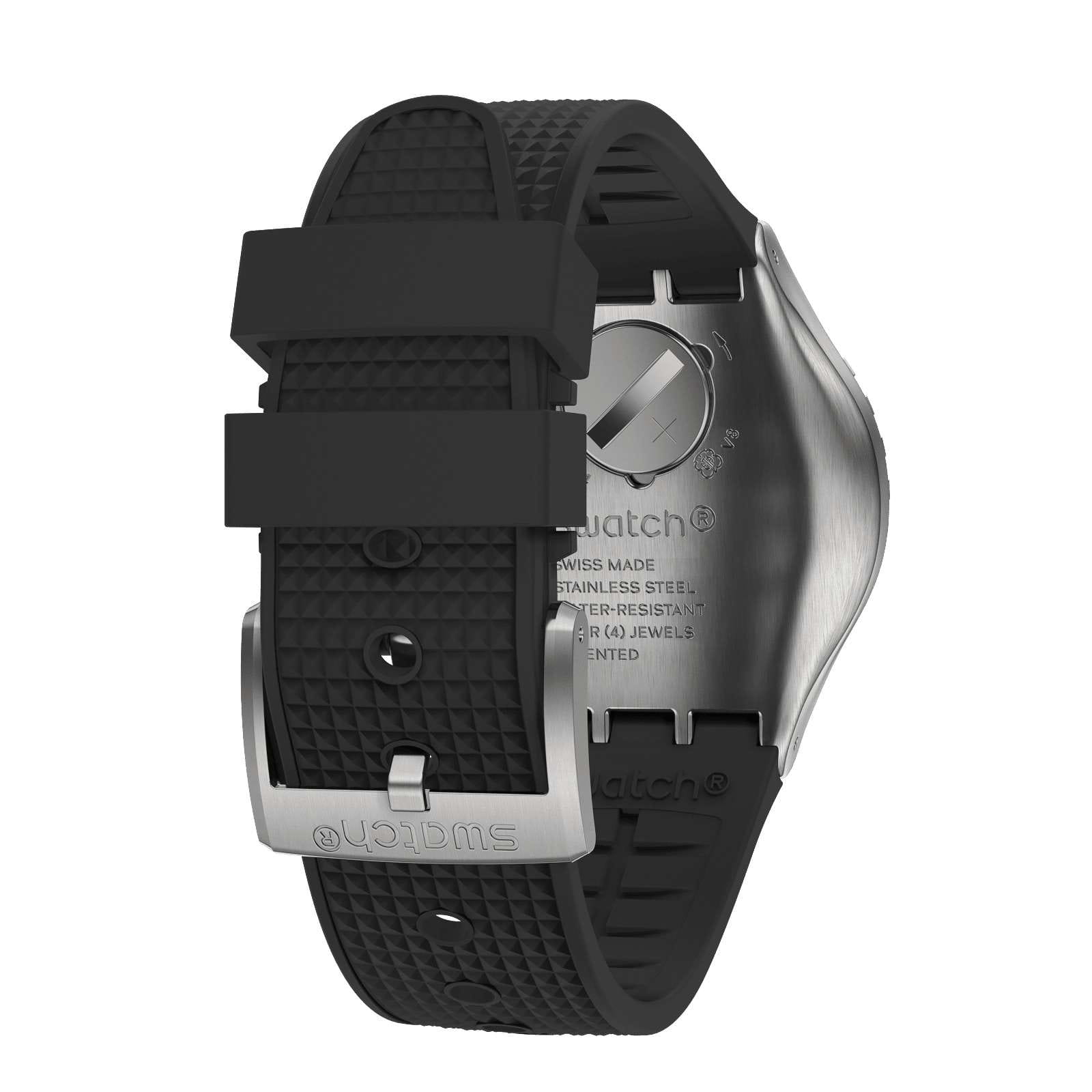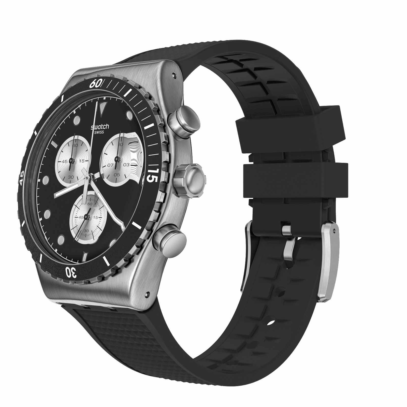 Часы Swatch YVS487 — это стильный и современный аксессуар для тех, кто ценит лёгкость и комфорт. Эта стильная модель часов из нержавеющей стали дополнена черным каучуковым ремешкомс фактурным верхом и матовой застежкой из нержавеющей стали. Но изюминка этих часов — матовый черный циферблат с серебристыми счетчиками хронографаХронографФункция позволяет измерять отрезки времени с особой точностью: часы, минуты, секунды. Верным признаком хронографа является наличие на циферблате 3 дополнительных окошек-счётчиков. и серебристыми индексами, и стрелками с люминесцентным покрытиемЛюминесцентное покрытиеПозволяет считывать показания времени в темноте. Производители наносят на стрелки, часовые индексы, безель или поверхность циферблата светонакопительный состав, дающий холодное свечение.. Завершают образ индикатор даты в положении «3 часа» на циферблате, а также серебристые цифры и индексы на безелеБезельВнешний ободок, закрепляющий стекло. В спортивных часах так называется поворотное кольцо с делениями на циферблате, выполняет роль таймера – замеряет отрезки времени на шкале. Неподвижный безель – элемент декора. Однонаправленно вращающийся безель на дайверских часах позволяет фиксировать моменты погружения и выныривания на поверхность. из нержавеющей стали с черным PVDPVDУльтратонкое покрытие наносится в технике вакуумного напыления, сочетает в себе нитрид титана особой прочности со слоем золота или оксида хрома. Несёт в себе декоративную или защитную функцию. покрытием. Водозащита 30 метров делает часы практичными для повседневного использования. Эти часы подойдут для повседневного ношения и станут ярким акцентом в вашем наряде.