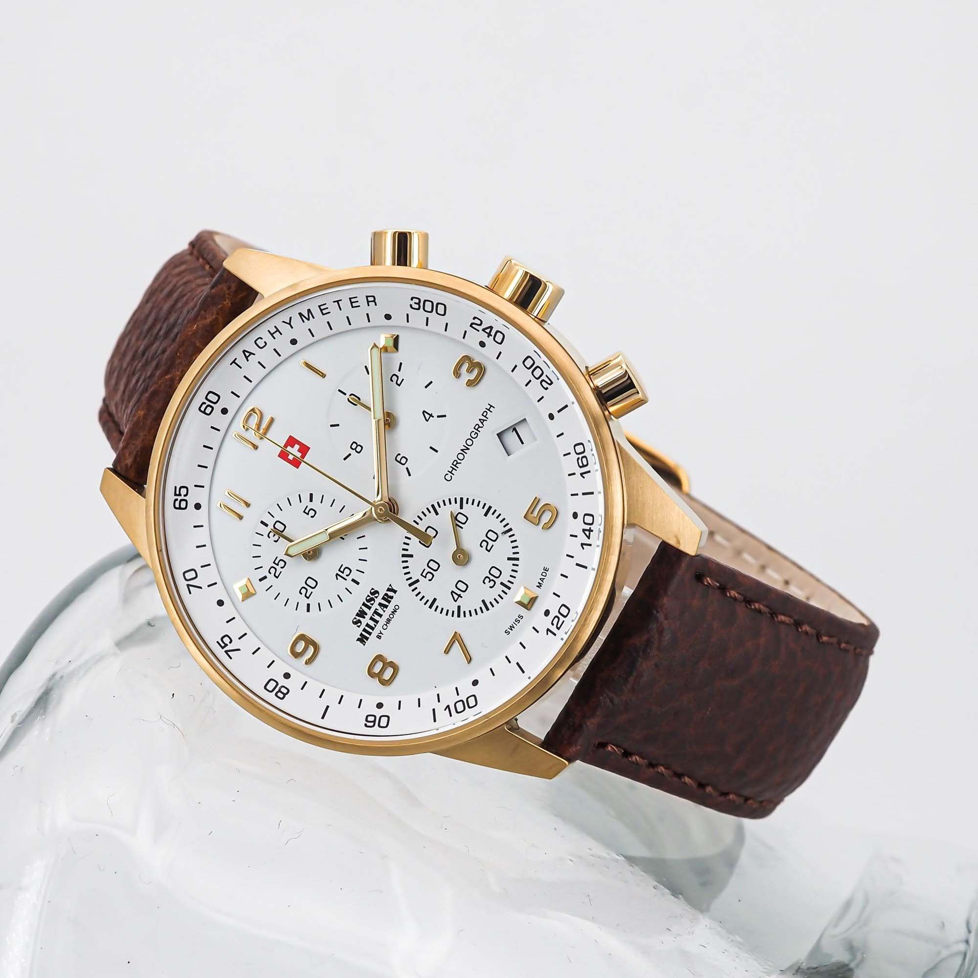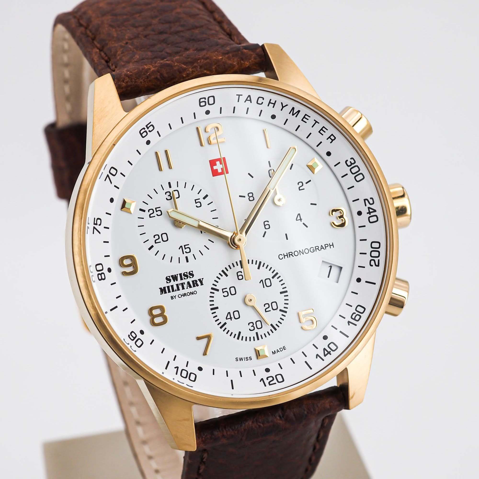 Стильные швейцарские наручные часы-хронографХронографФункция позволяет измерять отрезки времени с особой точностью: часы, минуты, секунды. Верным признаком хронографа является наличие на циферблате 3 дополнительных окошек-счётчиков. Swiss Military by Chrono SM34012.07 как нельзя лучше подойдут ценителям современных техно-решений . Вся корпусная часть, за исключением минерального стекла, состоит из инновационной нержавейки с особым PVD-покрытиемPVDУльтратонкое покрытие наносится в технике вакуумного напыления, сочетает в себе нитрид титана особой прочности со слоем золота или оксида хрома. Несёт в себе декоративную или защитную функцию.. Она делает стекло наручных часов Свисс Милитари еще прочнее и позволяет держать уровень водозащиты.Механизм: ETA G10.211.