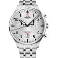Мужские швейцарские часы-хронографХронографФункция позволяет измерять отрезки времени с особой точностью: часы, минуты, секунды. Верным признаком хронографа является наличие на циферблате 3 дополнительных окошек-счётчиков. с секундомеромСекундомерСекундоме́р — прибор, способный измерять интервалы времени с точностью до долей секунды. Swiss Military by Chrono Vintage Chronograph SM34098.02, кварцевый механизм с высокой точностью. Сапфировое стеклоСапфировое стеклоПрочный и надёжный материал из кристалла сапфира синтетического происхождения, характеризующийся особой твёрдостью и устойчивостью к царапинам и повреждениям. устойчивое к мелким механическим повреждениям. Корпус часов изготовлен из нержавеющей стали. На циферблате расположены два дополнительных индикатора и окошко даты. Окошко даты находится в положении 6 часов. Стрелки с люминесцентным покрытиемЛюминесцентное покрытиеПозволяет считывать показания времени в темноте. Производители наносят на стрелки, часовые индексы, безель или поверхность циферблата светонакопительный состав, дающий холодное свечение.. Класс водозащиты: 100 метров, позволит плавать, нырять и заниматься другими водными видами спорта. Стальной браслет на раскладной застёжкеРаскладная застёжкаТакой тип застёжки используется только на браслетах из металла. Она никогда не раскрывается полностью, происходит разделение на 2 и более частей. Раскладывающая застёжка снизит вероятность потери часов к минимуму..
