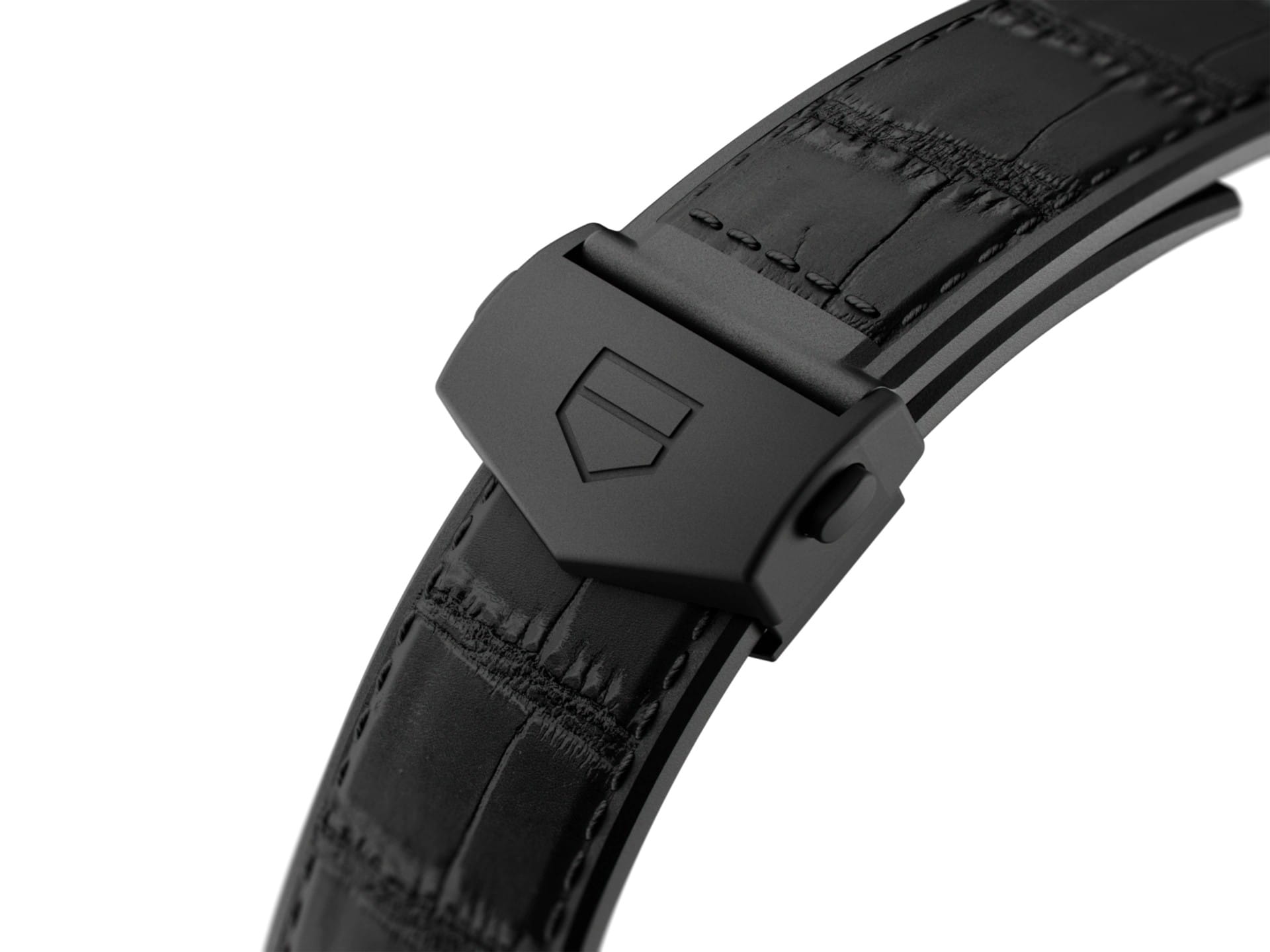 Хронограф TAG Heuer с турбийоном, отмеченный сертификатом COSC, в версии с 45-мм матовым корпусом из черной керамики. Настоящее произведение искусства со скелетонизированным циферблатом, серебристыми индикаторами и черным матовым ремешком из кожи и каучука, предназначенное для ношения на руке. TAG Heuer Carrera CAR5A90.FC6415, механический механизм (автоматический калибр) с высокой точностью. Сапфировое стекло устойчивое к появлению царапин, обладающее высокой прозрачностью. Класс водозащиты: 100 метров, позволит плавать, нырять и заниматься другими водными видами спорта. Корпус часов изготовлен из керамики, цвета.