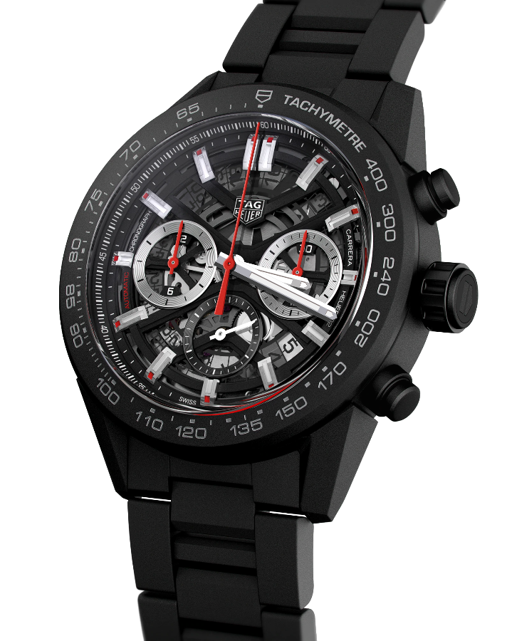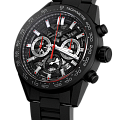 Часы TAG Heuer Carrera из черной керамики, оснащенные мануфактурным механизмом Heuer 02. Корпус часов, а также безель с тахиметрической шкалой, крепления и браслет выполнены из черной керамики. Часовые метки, часовая и минутная стрелки покрыты люминофором Super-LumiNova® для обеспечения превосходной читаемости показаний при слабом освещении. TAG Heuer Carrera CBG2A90.BH0653, механический механизм (автоматический калибр) с высокой точностью. Сапфировое стекло устойчивое к появлению царапин, обладающее высокой прозрачностью. Класс водозащиты: 100 метров, позволит плавать, нырять и заниматься другими водными видами спорта. Корпус часов изготовлен из керамики, черного цвета.