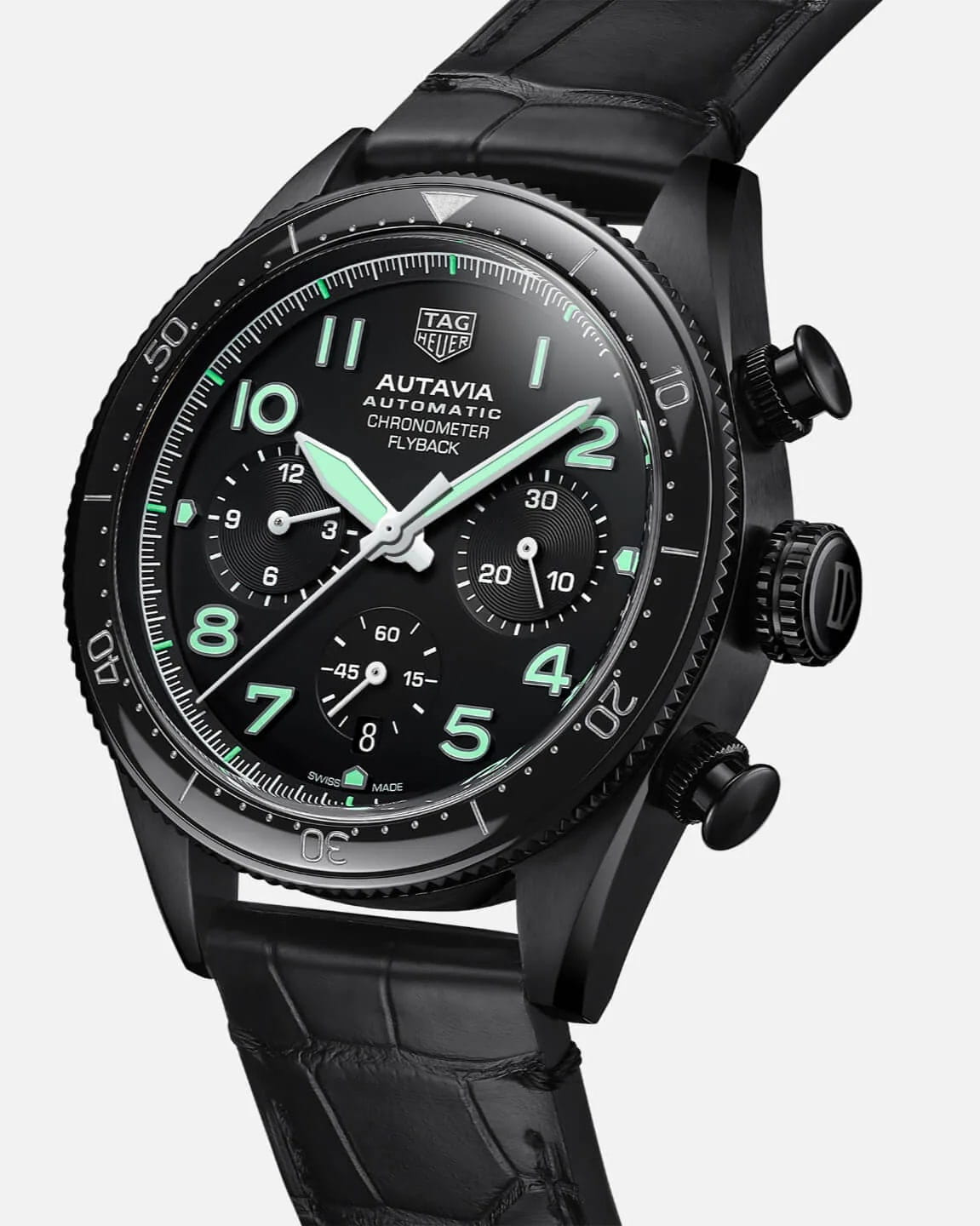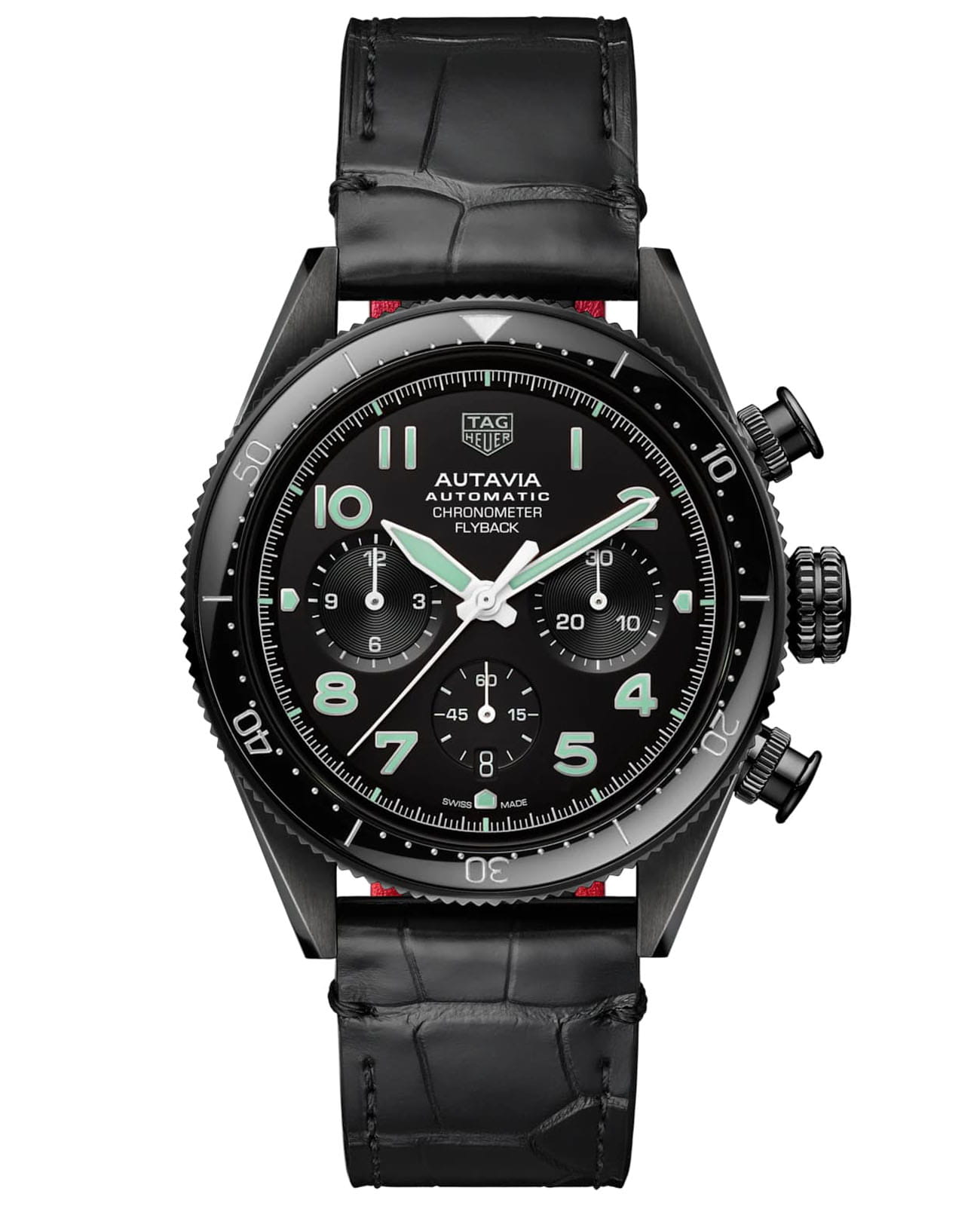 Новые мужские часы-хронографХронографФункция позволяет измерять отрезки времени с особой точностью: часы, минуты, секунды. Верным признаком хронографа является наличие на циферблате 3 дополнительных окошек-счётчиков. Autavia диаметром 42 мм отличаются непринужденным и эффектным дизайном и отлично подходят для повседневного использования. Оснащенные сверхточным хронометром Calibre Heuer 02 Flyback, сертифицированным COSCСертификат COSCОфициальный сертификат, подтверждающий то, что часы ходят с особо высокой точностью. Для получения документа часы подвергаются тестовым испытаниям, разработанным швейцарским институтом тестирования хронометров COSC. Допустимая норма для механических часов -4/+6 секунд в день, для кварцевых моделей +/- 0,07 секунд в день., эти заново изобретенные часы подходят для героических приключений. Механический механизм (автоматический калибр) с высокой точностью. Циферблат с люминесцентным покрытиемЛюминесцентное покрытиеПозволяет считывать показания времени в темноте. Производители наносят на стрелки, часовые индексы, безель или поверхность циферблата светонакопительный состав, дающий холодное свечение. стрелок и меток, дополнен сапфировым стекломСапфировое стеклоПрочный и надёжный материал из кристалла сапфира синтетического происхождения, характеризующийся особой твёрдостью и устойчивостью к царапинам и повреждениям., устойчивым к появлению царапин и обладающее высокой прозрачностью. Корпус часов изготовлен из стали, серебристого цвета. Классический черный циферблат в стиле кокпита невероятно удобочитаем благодаря ярким часовым меткам, стрелкам и индексам с белым покрытием Super-LumiNova®. Водонепроницаемость до 100 метров, прочный стальной корпус оснащен прочным черным керамическим безелем и подходящим черным ремешком из кожи аллигатора.