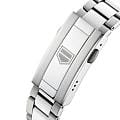 . Стальной серебряный браслет на раскладной застёжкеРаскладная застёжкаТакой тип застёжки используется только на браслетах из металла. Она никогда не раскрывается полностью, происходит разделение на 2 и более частей. Раскладывающая застёжка снизит вероятность потери часов к минимуму.. Окошко даты находится в положении 6 часов.