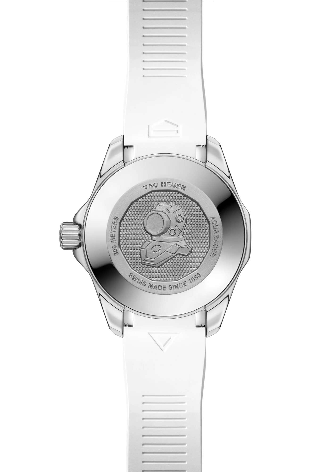 Женские механические швейцарские часы TAG Heuer Aquaracer Professional 300 Date WBP231N.FT6234, механический механизм (автоматический калибр) с Calibre 5 с высокой точностью. Сапфировое стеклоСапфировое стеклоПрочный и надёжный материал из кристалла сапфира синтетического происхождения, характеризующийся особой твёрдостью и устойчивостью к царапинам и повреждениям. устойчивое к появлению царапин, обладающее высокой прозрачностью. Класс водозащиты: 300 метров, позволит плавать, нырять и заниматься другими водными видами спорта. Корпус часов изготовлен из стали. Поворотный безельБезельВнешний ободок, закрепляющий стекло. В спортивных часах так называется поворотное кольцо с делениями на циферблате, выполняет роль таймера – замеряет отрезки времени на шкале. Неподвижный безель – элемент декора. Однонаправленно вращающийся безель на дайверских часах позволяет фиксировать моменты погружения и выныривания на поверхность. из стали и керамики. Каучуковый ремень на раскладной застёжкеРаскладная застёжкаТакой тип застёжки используется только на браслетах из металла. Она никогда не раскрывается полностью, происходит разделение на 2 и более частей. Раскладывающая застёжка снизит вероятность потери часов к минимуму.. Изделие дополнено 8 бриллиантами VS+ в качестве часовых меток. Часы с люминесцентным покрытиемЛюминесцентное покрытиеПозволяет считывать показания времени в темноте. Производители наносят на стрелки, часовые индексы, безель или поверхность циферблата светонакопительный состав, дающий холодное свечение. Super-LumiNova®. Окошко даты находится в положении 6 часов.
