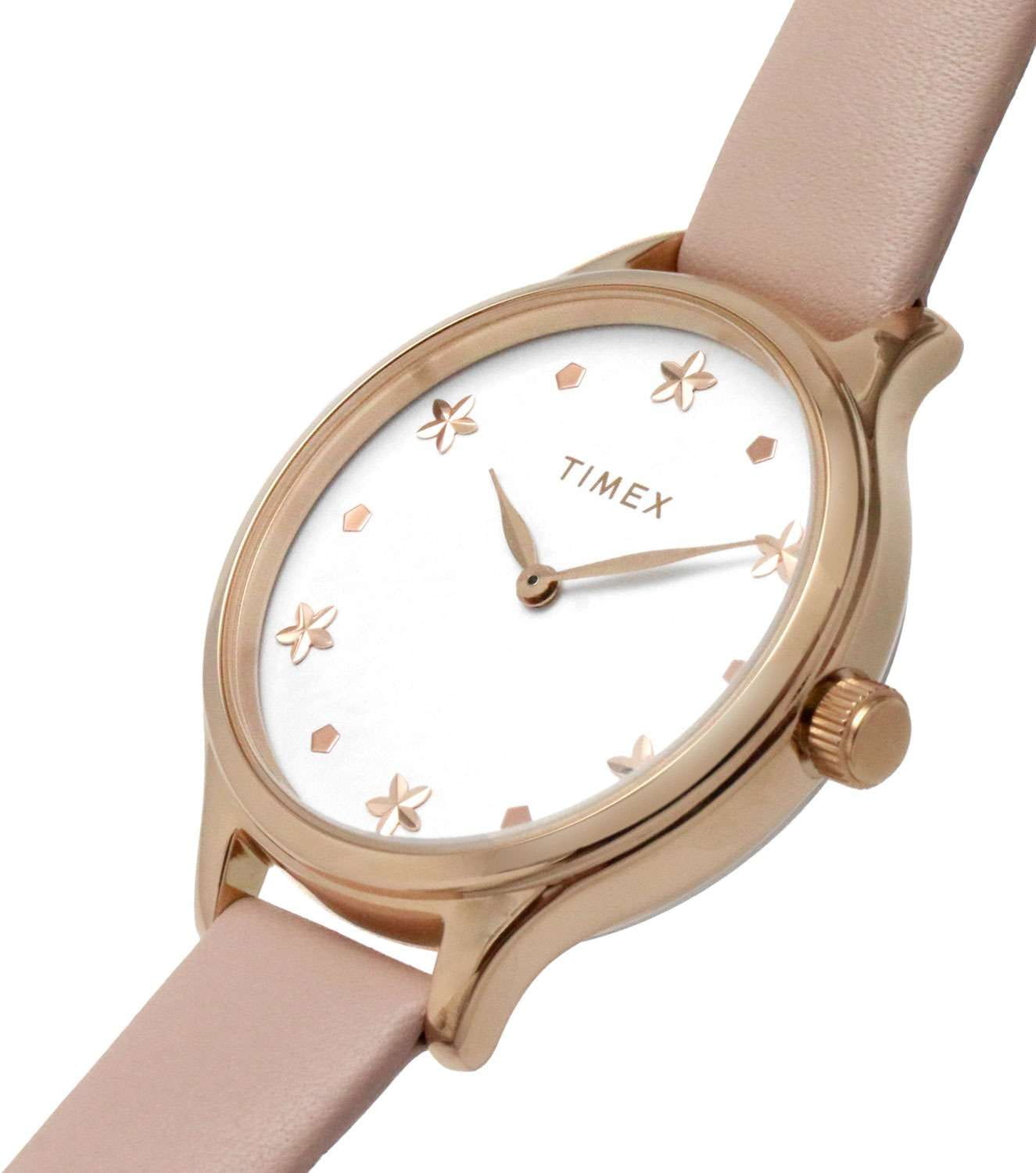 Изысканные часы Timex TW2V23700 станут прекрасным дополнением вашего образа и подчеркнут вашу индивидуальность. Эти часы, разработанные в США, сочетают в себе элегантность и современные технологии. Корпус часов выполнен из латуни с розовым PVDPVDУльтратонкое покрытие наносится в технике вакуумного напыления, сочетает в себе нитрид титана особой прочности со слоем золота или оксида хрома. Несёт в себе декоративную или защитную функцию. покрытием, что придаёт им утончённый и стильный вид. Белый циферблат сдержанного дизайна украшен метками в виде точек и цветков, что добавляет часам особого шарма. Листовидные стрелки в стиле Feuille подчёркивают изящество дизайна, а отсутствие секундной стрелки делает облик часов ещё более минималистичным. Часы оснащены надёжным кварцевым механизмом, который обеспечивает точный ход и долговечность. Минеральное стеклоМинеральное стеклоМинеральное стекло представляет собой искусственно выращенный минерал кварца. Такое стекло отличается особой устойчивостью к повреждениям и царапинам. Уступает по некоторым качествам сапфировому стеклу. защищает циферблат от царапин и повреждений, сохраняя его первозданный вид на протяжении долгого времени. Рифлёная заводная головка добавляет удобства в использовании. Водозащита 30WR позволяет не беспокоиться о случайных брызгах воды, делая эти часы подходящими для повседневного ношения. Удобный кожаный ремешок с классической застежкой обеспечивает комфорт и надёжность, прекрасно дополняя общий дизайн часов. С диаметром корпуса 36 мм и шириной ремешка 14 мм, эти часы идеально подходят для изящного запястья, становясь акцентом любого наряда. Эти часы — отличный выбор для тех, кто ищет стильный и функциональный аксессуар.