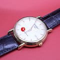 Аксессуар премиальной категории отличается универсальным классическим исполнением, его лаконичное оформление никогда не утратит актуальности. Эксклюзивной особенностью стал корпус, сделанный из 18-каратного жёлтого золота18-каратное золотоОбозначение по каратной системе пробирования, оно показывает, сколько драгоценного металла содержится в изделии. 18 карат - в составе 75% чистого золота, соответствует 750 пробе.