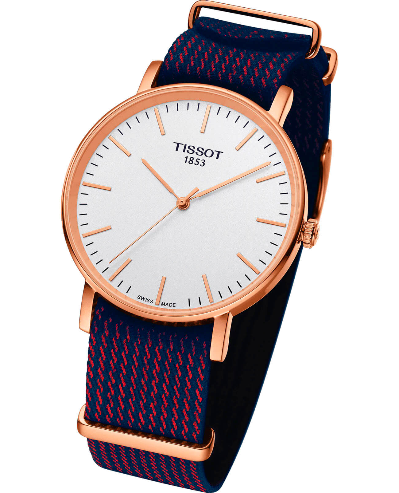Классическое оформление позволяет не задумываться о подборе аксессуара к определённой одежде, благодаря универсальному дизайну модель сочетается с любым стилем. Оригинальной чертой стал синий тканевый ремешок NATO с красным узором. Надёжный стальной корпус с PVD-покрытиемPVDУльтратонкое покрытие наносится в технике вакуумного напыления, сочетает в себе нитрид титана особой прочности со слоем золота или оксида хрома. Несёт в себе декоративную или защитную функцию. цвета розового золота защищает кварцевый механизм ETA 902.101 от повреждений. Стекло из сапфира устойчиво к царапинам. Сохранение водонепроницаемости при давлении 3 бар. Габариты: 38 x 38 x 6,5 мм.