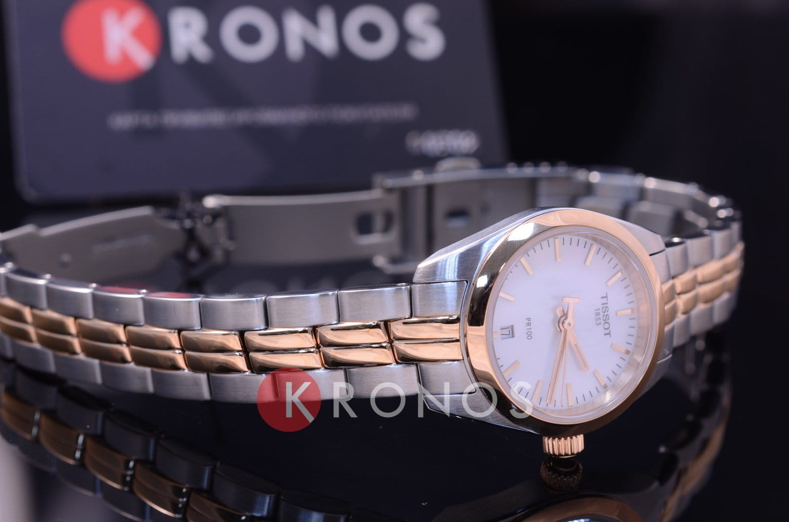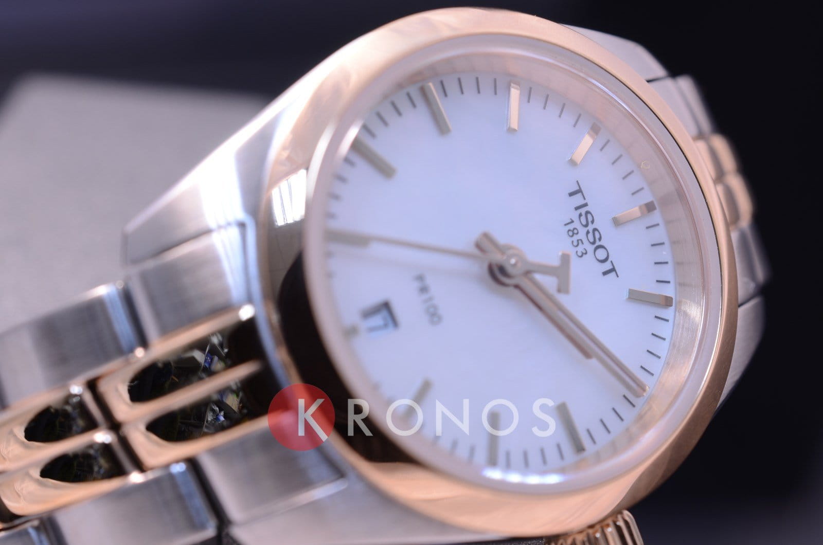Дизайнеры реализуют свои идеи в оригинальном оформлении браслетов, центральные звенья цвета "розовое золото" приковывают взгляды. Интерес представляет также перламутровый циферблат компактного размера, благодаря этому часы красиво смотрятся на изящном женском запястье. Кварцевый механизм ETA F03.111. PVD-покрытие корпуса и браслета. Водонепроницаемость 100 метров. Габариты: 25 x 25 x 6,9 мм.