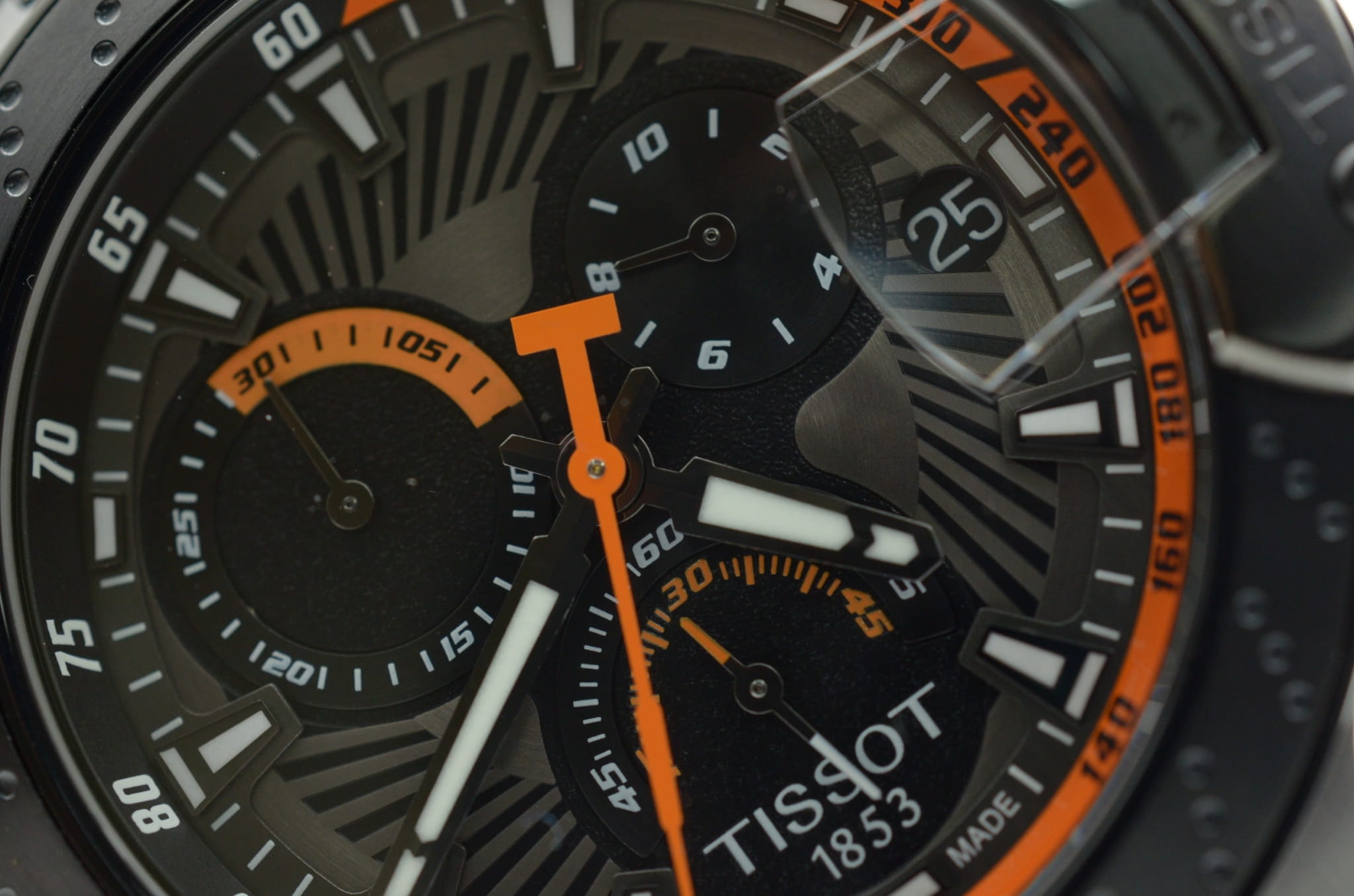 Это наручные часы с оранжевыми акцентами и с оригинальным дизайном, напоминающим гоночные мотоциклы, представлено всего 4999 экземпляров. БезельБезельВнешний ободок, закрепляющий стекло. В спортивных часах так называется поворотное кольцо с делениями на циферблате, выполняет роль таймера – замеряет отрезки времени на шкале. Неподвижный безель – элемент декора. Однонаправленно вращающийся безель на дайверских часах позволяет фиксировать моменты погружения и выныривания на поверхность. имитирует перфорированный тормозной диск, силиконовый ремешок с синтетической фактурой отсылает нас к рисунку протектора шины. Аксессуар станет главным атрибутом вашего образа. Спортивный хронографХронографФункция позволяет измерять отрезки времени с особой точностью: часы, минуты, секунды. Верным признаком хронографа является наличие на циферблате 3 дополнительных окошек-счётчиков. работает от батарейки, комплектуется кварцевым калибром ETA G10.212. Задняя крышка с номером Марка Маркеса - 93. Корпус с чёрным и серым PVD-покрытиемPVDУльтратонкое покрытие наносится в технике вакуумного напыления, сочетает в себе нитрид титана особой прочности со слоем золота или оксида хрома. Несёт в себе декоративную или защитную функцию.. Надёжное стекло из сапфира. Эксклюзивная упаковка в виде мотоциклетного шлема. Секундомер, окошко даты, тахиметрТахиметрРазмеченная шкала, располагается на ободке или безеле часов. Тахиметр позволяет рассчитать скорость на определённом участке пути, расстояние измеряется в километрах или милях.. Габариты: 43 x 44,5 x 12,7 мм.