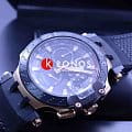 Наручные часы c оригинальным дизайном, напоминающим гоночные мотоциклы. БезельБезельВнешний ободок, закрепляющий стекло. В спортивных часах так называется поворотное кольцо с делениями на циферблате, выполняет роль таймера – замеряет отрезки времени на шкале. Неподвижный безель – элемент декора. Однонаправленно вращающийся безель на дайверских часах позволяет фиксировать моменты погружения и выныривания на поверхность. имитирует перфорированный тормозной диск, силиконовый ремешок отсылает нас к рисунку протектора шины. Аксессуар станет главным атрибутом вашего образа. Спортивный хронографХронографФункция позволяет измерять отрезки времени с особой точностью: часы, минуты, секунды. Верным признаком хронографа является наличие на циферблате 3 дополнительных окошек-счётчиков. работает от батарейки, комплектуется кварцевым калибром ETA G10.212. Задняя крышка с фирменным логотипом MotoGP. Корпус с чёрным и золотисто-розовым PVD-покрытиемPVDУльтратонкое покрытие наносится в технике вакуумного напыления, сочетает в себе нитрид титана особой прочности со слоем золота или оксида хрома. Несёт в себе декоративную или защитную функцию.. Надёжное стекло из сапфира. Коробка в виде мотоциклетного шлема. Секундомер, окошко даты. Габариты: 43 x 44,5 x 12,7 мм.