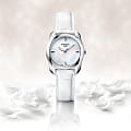 Наручные часы будут идеально смотреться в любой ситуации, навсегда оставаясь модным и актуальным аксессуаром. Циферблат из белого перламутра дополнен изящными стрелками, по форме напоминающие лепестки. Кварцевый механизм ETA F04.111 поддерживает высокую точность хода. Стекло из сапфира. Ремешок белого цвета из натуральной кожи. Функция EOLEOLПредставляет собой систему, уведомляющую владельца часов о необходимости замены элемента питания. За 2 недели до полного разряда батарейки секундная стрелка перестаёт ходить чётко и начинает перепрыгивать на 3-4 деления.. Водостойкость 30 метров. Габариты: 28,2 x 28,2 x 8 мм.