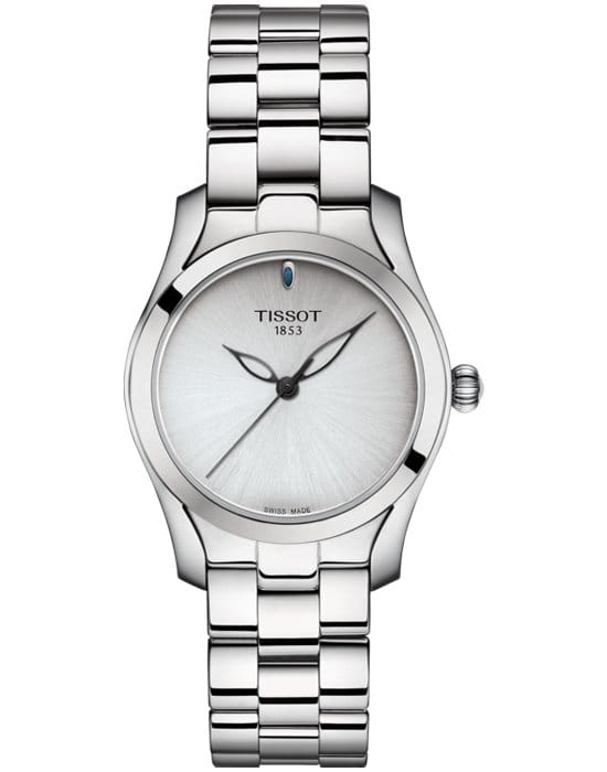 TISSOT T-Wave T1122101103100 - женские кварцевые наручные часы Корпус этих часов небольшого размера (30 мм) и выполнен из нержавеющей стали L316 Модель T-Wave T1122101103100 имеет устойчивое к царапинам сапфировое стекло, браслет из нержавеющей стали , белый циферблат Калибр механизма: ETA F04111 Класс водозащиты: 30 м / 3 АТМ Дополнительные функции и особенности: нет Полная заводская комплектация TISSOT: оригинальные часы, фирменная коробка, инструкция, сервисная книжка, роман о часовой фабрике, миникаталог, замшевый фирменный чехол годачерного цвета для хранения и/или переноски часов, кассовый и товарный чеки