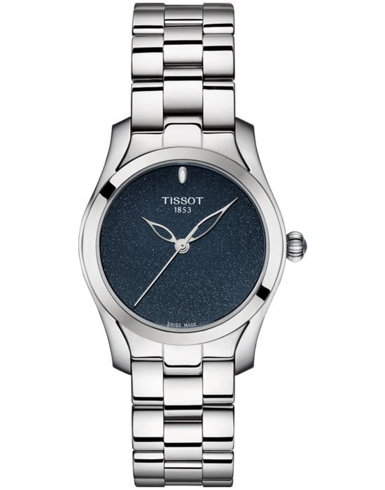 TISSOT T-Wave T1122101104100 - женские кварцевые наручные часы Корпус этих часов небольшого размера (30 мм) и выполнен из нержавеющей стали L316 Модель T-Wave T1122101104100 имеет устойчивое к царапинам сапфировое стекло, браслет из нержавеющей стали , синий циферблат Калибр механизма: ETA F04111 Класс водозащиты: 30 м / 3 АТМ Дополнительные функции и особенности: нет Полная заводская комплектация TISSOT: оригинальные часы, фирменная коробка, инструкция, сервисная книжка, роман о часовой фабрике, миникаталог, замшевый фирменный чехол годачерного цвета для хранения и/или переноски часов, кассовый и товарный чеки