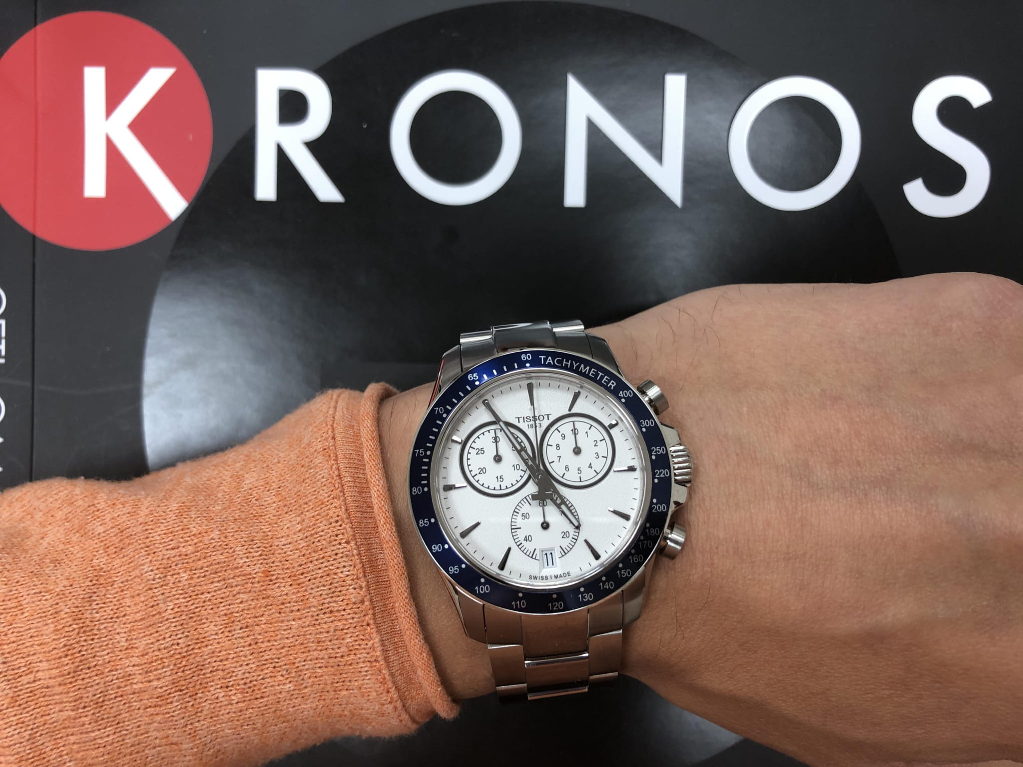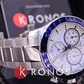 Спортивный высокоточный хронографХронографФункция позволяет измерять отрезки времени с особой точностью: часы, минуты, секунды. Верным признаком хронографа является наличие на циферблате 3 дополнительных окошек-счётчиков. в белом цвете дополнен броским синим безелемБезельВнешний ободок, закрепляющий стекло. В спортивных часах так называется поворотное кольцо с делениями на циферблате, выполняет роль таймера – замеряет отрезки времени на шкале. Неподвижный безель – элемент декора. Однонаправленно вращающийся безель на дайверских часах позволяет фиксировать моменты погружения и выныривания на поверхность. со шкалой , сочетание оттенков смотрится весьма гармонично. Работа часов осуществляется благодаря кварцевому калибру ETA G10.212 с высокой точностью хода. Стекло из сапфира устойчиво к образованию царапин. Браслет и корпус из долговечной стали 316L, противостоящей возникновению коррозии. . Секундомер, индикация числа. Габариты: 42,5 x 42,5 x 11,2 мм.