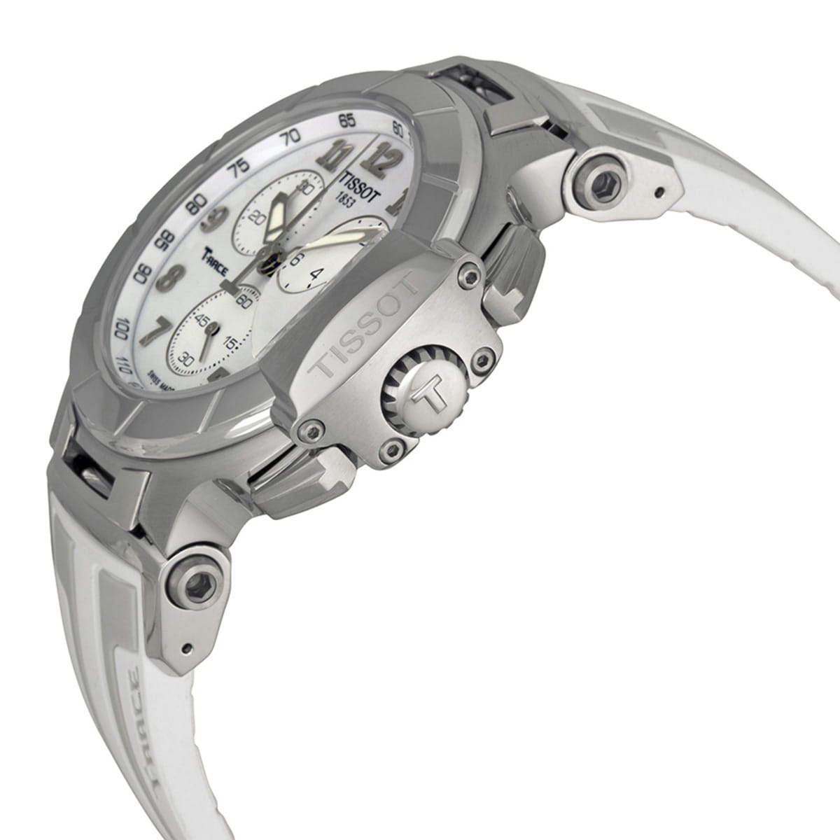 Мужские швейцарские часы-хронографХронографФункция позволяет измерять отрезки времени с особой точностью: часы, минуты, секунды. Верным признаком хронографа является наличие на циферблате 3 дополнительных окошек-счётчиков. Tissot T-Sport T-Race Quartz Chronograph T048.417.17.012.00, кварцевый механизм с высокой точностью. Сапфировое стеклоСапфировое стеклоПрочный и надёжный материал из кристалла сапфира синтетического происхождения, характеризующийся особой твёрдостью и устойчивостью к царапинам и повреждениям. устойчивое к появлению царапин, обладающее высокой прозрачностью. Класс водозащиты: 100 метров, позволит плавать, нырять и заниматься другими водными видами спорта. Корпус часов изготовлен из стали. Силиконовый ремешок с раскладной застёжкойРаскладная застёжкаТакой тип застёжки используется только на браслетах из металла. Она никогда не раскрывается полностью, происходит разделение на 2 и более частей. Раскладывающая застёжка снизит вероятность потери часов к минимуму..