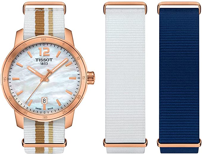 TISSOT T0954101703700 T-Sport Quickster Quartz - мужские кварцевые наручные часы Корпус этих часов среднего размера (40 мм) и выполнен из нержавеющей стали L316 металлического цвета Модель TISSOT T0954101703700 T-Sport Quickster Quartz имеет устойчивое к царапинам сапфировое стекло, тканевый ремешок серого цвета, белый циферблат Калибр механизма: ETA F06111 Класс водозащиты: 100 м / 10 АТМ (разрешается плавание и ныряние без акваланга) Дополнительные функции и особенности: отображение числа Полная заводская комплектация TISSOT: оригинальные часы, фирменная коробка, инструкция, сервисная книжка, роман о часовой фабрике, миникаталог, замшевый фирменный чехол черного цвета для хранения и/или переноски часов, кассовый и товарный чеки Международная гарантия 2 года Производство и сборка: Швейцария