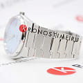 Корпус часов изготовлен из нержавеющей стали марки 316L серебристого цвета. Устойчивое к появлению царапин сапфировое стеклоСапфировое стеклоПрочный и надёжный материал из кристалла сапфира синтетического происхождения, характеризующийся особой твёрдостью и устойчивостью к царапинам и повреждениям. с антибликовым покрытием. Класс водозащиты: 100 метров, позволит плавать, нырять и заниматься другими водными видами спорта. Браслет серебристого цвета с застёжкой-бабочкой с кнопкамиЗастёжка "бабочка"Такой вид застёжки дополняется предохранителями, помогающими избежать случайного раскрытия браслета. Обладают изящным исполнением. для расстегивания браслета.