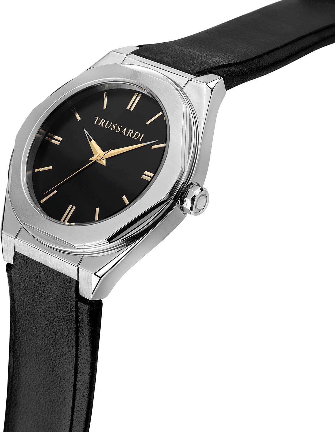Итальянские мужские часы Trussardi Brink R2451156001 - это стильный мужской аксессуар, который сочетает элегантный дизайн и практичность. Корпус выполнен из нержавеющей стали серебристого цвета, что обеспечивает долговечность и утончённый внешний вид. Надежное минеральное стеклоМинеральное стеклоМинеральное стекло представляет собой искусственно выращенный минерал кварца. Такое стекло отличается особой устойчивостью к повреждениям и царапинам. Уступает по некоторым качествам сапфировому стеклу. защищает циферблат от царапин и обеспечивает долговечность. Модель оснащена кварцевым механизмом, обеспечивающим высокую точность хода. Кожаный ремень на стандартной застежке обеспечивает комфортное ношение. Водозащита 50 метров позволит защитить корпус от случайных брызг или капель дождя. Стрелки оснащены люминесцентным покрытиемЛюминесцентное покрытиеПозволяет считывать показания времени в темноте. Производители наносят на стрелки, часовые индексы, безель или поверхность циферблата светонакопительный состав, дающий холодное свечение., обеспечивающим отличную видимость даже при слабом освещении. Эта модель – отличный выбор для тех, кто ищет сочетание стиля, качества и функциональности. Часы станут не только полезным аксессуаром, но и выразительным элементом вашего имиджа.