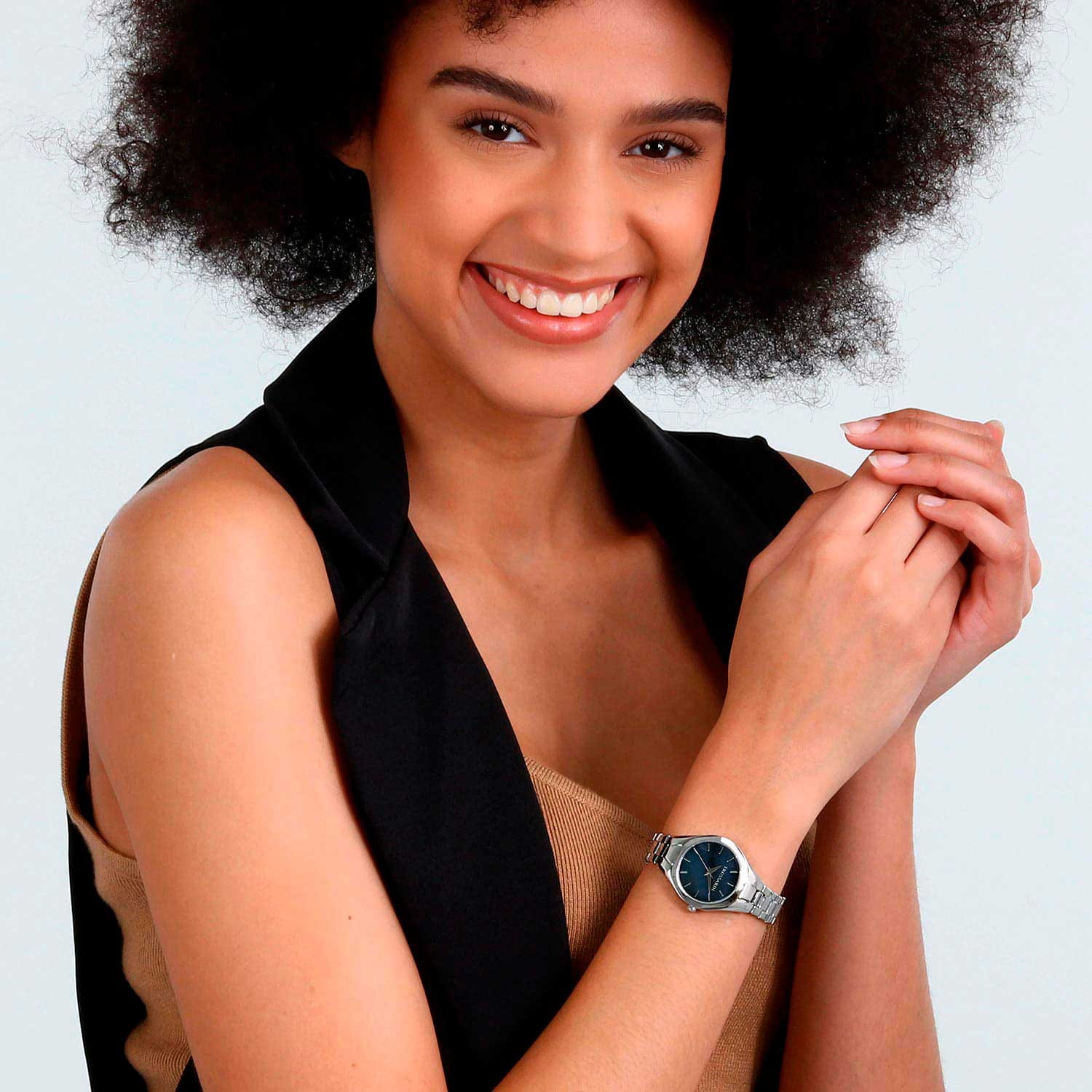 Итальянские женские часы Trussardi Metropolitan R2453157511 - это стильный женский аксессуар, который сочетает элегантный дизайн и практичность. Корпус выполнен из нержавеющей стали, что обеспечивает долговечность и утончённый внешний вид. Надежное минеральное стеклоМинеральное стеклоМинеральное стекло представляет собой искусственно выращенный минерал кварца. Такое стекло отличается особой устойчивостью к повреждениям и царапинам. Уступает по некоторым качествам сапфировому стеклу. защищает циферблат от царапин и обеспечивает долговечность. Модель оснащена кварцевым механизмом, обеспечивающим высокую точность хода. Браслет из нержавеющей стали на раскладной застёжкеРаскладная застёжкаТакой тип застёжки используется только на браслетах из металла. Она никогда не раскрывается полностью, происходит разделение на 2 и более частей. Раскладывающая застёжка снизит вероятность потери часов к минимуму. обеспечивает комфортное ношение. Водозащита 50 метров позволит защитить корпус от случайных брызг или капель дождя. Эта модель – отличный выбор для тех, кто ищет сочетание стиля, качества и функциональности. Часы станут не только полезным аксессуаром, но и выразительным элементом вашего имиджа.