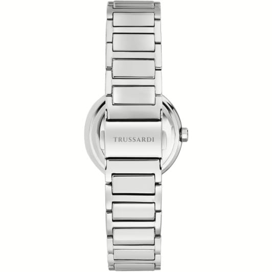 Итальянские женские часы Trussardi T-Bridge R2453171506 - это стильный женский аксессуар, который сочетает элегантный дизайн и практичность. Корпус выполнен из нержавеющей стали, что обеспечивает долговечность и утончённый внешний вид. Надежное минеральное стеклоМинеральное стеклоМинеральное стекло представляет собой искусственно выращенный минерал кварца. Такое стекло отличается особой устойчивостью к повреждениям и царапинам. Уступает по некоторым качествам сапфировому стеклу. защищает циферблат с кристаллами от царапин и обеспечивает долговечность. Модель оснащена кварцевым механизмом, обеспечивающим высокую точность хода.  Браслет из нержавеющей стали на раскладной застёжкеРаскладная застёжкаТакой тип застёжки используется только на браслетах из металла. Она никогда не раскрывается полностью, происходит разделение на 2 и более частей. Раскладывающая застёжка снизит вероятность потери часов к минимуму. обеспечивает комфортное ношение. Водозащита 50 метров позволит защитить корпус от случайных брызг или капель дождя. Эта модель – отличный выбор для тех, кто ищет сочетание стиля, качества и функциональности. Часы станут не только полезным аксессуаром, но и выразительным элементом вашего имиджа.