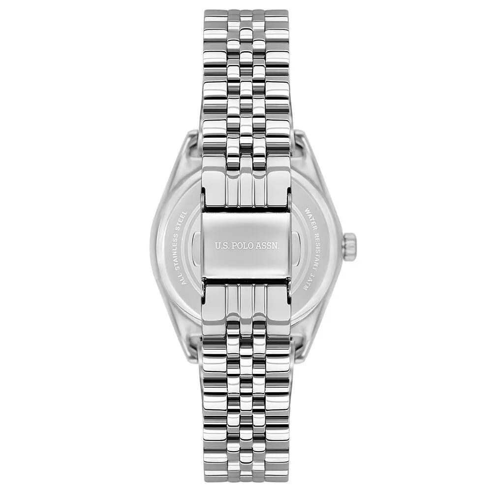 Женские элегантные часы U.S. Polo Assn. Stile USPA2045-08, кварцевый механизм с высокой точностью. Минеральное стеклоМинеральное стеклоМинеральное стекло представляет собой искусственно выращенный минерал кварца. Такое стекло отличается особой устойчивостью к повреждениям и царапинам. Уступает по некоторым качествам сапфировому стеклу. устойчивое к появлению царапин, обладающее высокой прозрачностью. Изысканный корпус изготовлен из нержавеющей стали. Лаконичные золотистые центральные часовая, минутная и секундная стрелки. Класс водозащиты: 50 метров, позволит защитить корпус от случайных брызг или капель дождя. Стальной браслет с раскладной застёжкойРаскладная застёжкаТакой тип застёжки используется только на браслетах из металла. Она никогда не раскрывается полностью, происходит разделение на 2 и более частей. Раскладывающая застёжка снизит вероятность потери часов к минимуму. обеспечивает комфорт и удобство в использовании, добавляя завершающий штрих к этому стильному аксессуару. Циферблат подчёркивает изысканный характер часов, создавая универсальный образ, подходящий как для повседневных ситуаций, так и для особых случаев.