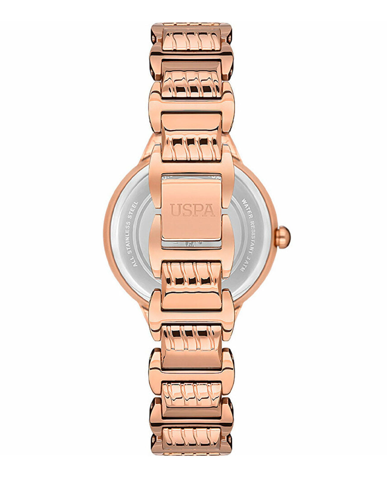 Женские часы U.S. Polo Assn Stile USPA2046-02, кварцевый механизм с высокой точностью. Минеральное стеклоМинеральное стеклоМинеральное стекло представляет собой искусственно выращенный минерал кварца. Такое стекло отличается особой устойчивостью к повреждениям и царапинам. Уступает по некоторым качествам сапфировому стеклу. устойчивое к появлению царапин, обладающее высокой прозрачностью. Корпус изготовлен из нержавеющей стали с IP-покрытиемIP-покрытиеМетод ионного напыления. Демонстрирует повышенную устойчивость к истиранию, окислению и химическим веществам. Под воздействием высокого давления и температуры около 1500°C молекулы металла надёжно соединяются с частицами корпуса часов.. Циферблат украшен кристаллами. Класс водозащиты: 50 метров, позволит защитить корпус от случайных брызг или капель дождя. Стальной браслет с IP-покрытиемIP-покрытиеМетод ионного напыления. Демонстрирует повышенную устойчивость к истиранию, окислению и химическим веществам. Под воздействием высокого давления и температуры около 1500°C молекулы металла надёжно соединяются с частицами корпуса часов. на ювелирной застёжке.