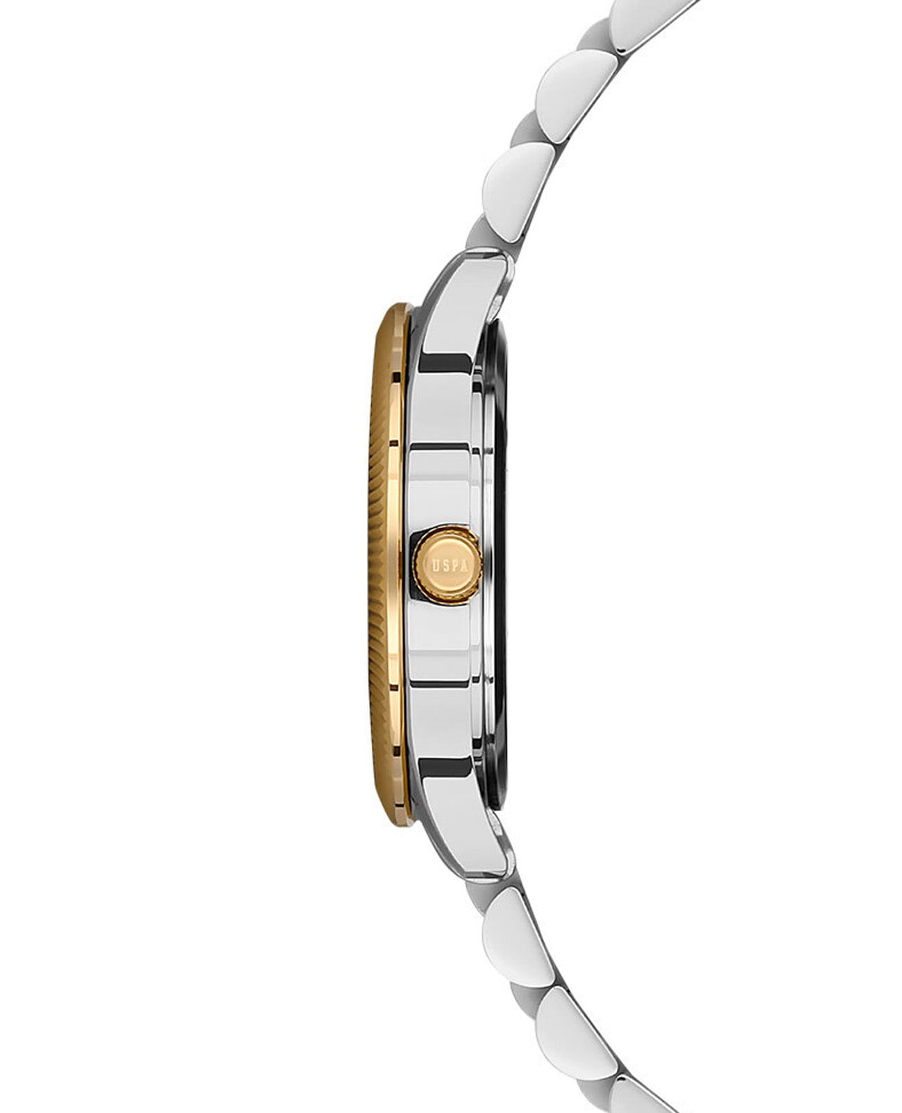 Женские часы U.S. Polo Assn Stile USPA2061-02, кварцевый механизм с высокой точностью. Минеральное стеклоМинеральное стеклоМинеральное стекло представляет собой искусственно выращенный минерал кварца. Такое стекло отличается особой устойчивостью к повреждениям и царапинам. Уступает по некоторым качествам сапфировому стеклу. устойчивое к появлению царапин, обладающее высокой прозрачностью. Корпус изготовлен из нержавеющей стали. БезельБезельВнешний ободок, закрепляющий стекло. В спортивных часах так называется поворотное кольцо с делениями на циферблате, выполняет роль таймера – замеряет отрезки времени на шкале. Неподвижный безель – элемент декора. Однонаправленно вращающийся безель на дайверских часах позволяет фиксировать моменты погружения и выныривания на поверхность. с IP-покрытиемIP-покрытиеМетод ионного напыления. Демонстрирует повышенную устойчивость к истиранию, окислению и химическим веществам. Под воздействием высокого давления и температуры около 1500°C молекулы металла надёжно соединяются с частицами корпуса часов.. Класс водозащиты: 50 метров, позволит защитить корпус от случайных брызг или капель дождя. Стальной браслет с частичным IP-покрытиемIP-покрытиеМетод ионного напыления. Демонстрирует повышенную устойчивость к истиранию, окислению и химическим веществам. Под воздействием высокого давления и температуры около 1500°C молекулы металла надёжно соединяются с частицами корпуса часов. на раскладной застёжкеРаскладная застёжкаТакой тип застёжки используется только на браслетах из металла. Она никогда не раскрывается полностью, происходит разделение на 2 и более частей. Раскладывающая застёжка снизит вероятность потери часов к минимуму..