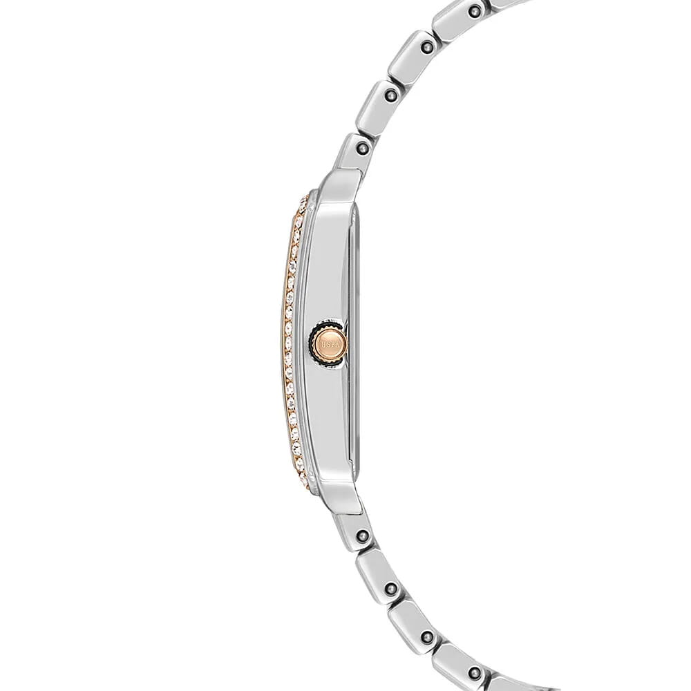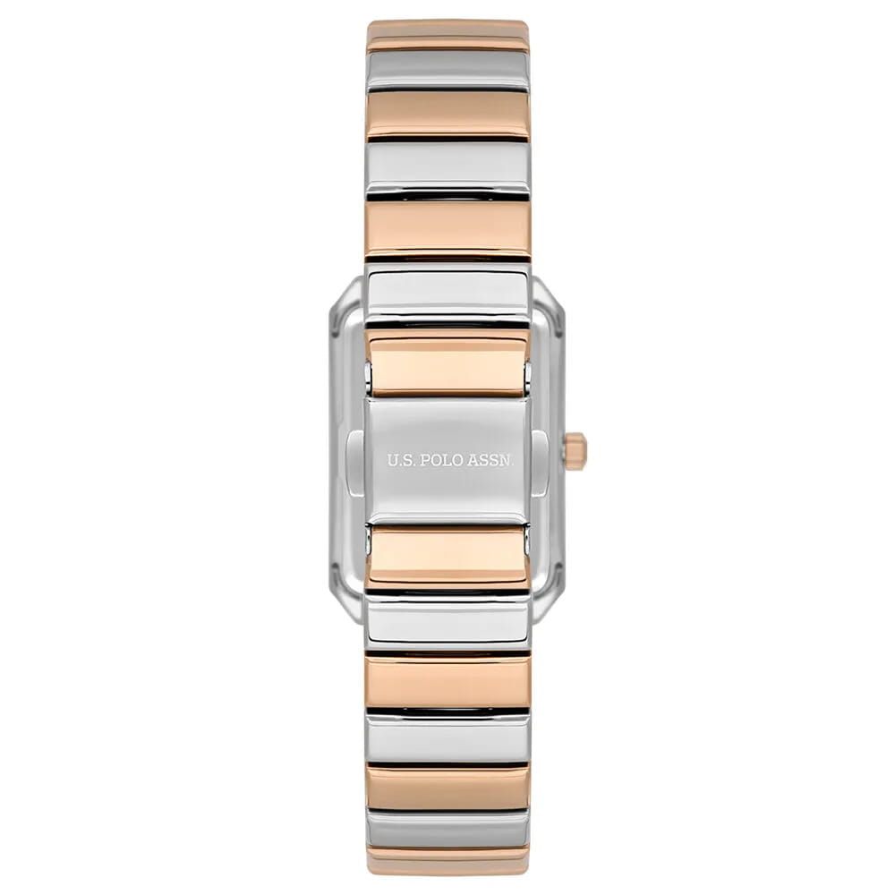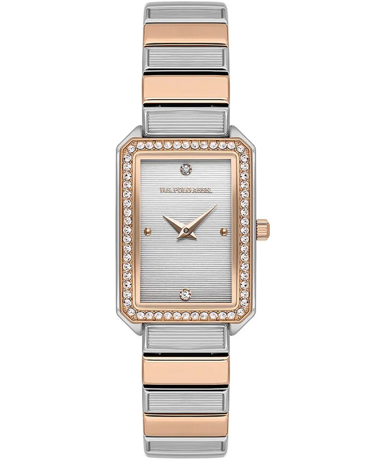 Женские наручные часы U.S. Polo Assn. Stile USPA2108-04 — это стильный и лаконичный аксессуар, выполненный в форме квадрата. Модель изготовлена из стали серебристого цвета, а безельБезельВнешний ободок, закрепляющий стекло. В спортивных часах так называется поворотное кольцо с делениями на циферблате, выполняет роль таймера – замеряет отрезки времени на шкале. Неподвижный безель – элемент декора. Однонаправленно вращающийся безель на дайверских часах позволяет фиксировать моменты погружения и выныривания на поверхность. с IP-покрытиемIP-покрытиеМетод ионного напыления. Демонстрирует повышенную устойчивость к истиранию, окислению и химическим веществам. Под воздействием высокого давления и температуры около 1500°C молекулы металла надёжно соединяются с частицами корпуса часов. украшен изысканными кристаллами, придающими часам роскошный вид. Циферблат с лаконичными центральными часовой и минутной стрелками. Защиту циферблата обеспечивает минеральное стеклоМинеральное стеклоМинеральное стекло представляет собой искусственно выращенный минерал кварца. Такое стекло отличается особой устойчивостью к повреждениям и царапинам. Уступает по некоторым качествам сапфировому стеклу., устойчивое к мелким повреждениям. Часы оснащены кварцевым механизмом, гарантирующим точность и минимальное обслуживание. Водонепроницаемость 3 АТМ позволяет использовать часы в повседневных условиях — при мытье рук или под лёгким дождём. Браслет выполнен из стали с IP-покрытиемIP-покрытиеМетод ионного напыления. Демонстрирует повышенную устойчивость к истиранию, окислению и химическим веществам. Под воздействием высокого давления и температуры около 1500°C молекулы металла надёжно соединяются с частицами корпуса часов. и оснащён раскладной застёжкойРаскладная застёжкаТакой тип застёжки используется только на браслетах из металла. Она никогда не раскрывается полностью, происходит разделение на 2 и более частей. Раскладывающая застёжка снизит вероятность потери часов к минимуму., обеспечивающей комфорт и уверенную фиксацию на запястье. Толщина корпуса составляет 8 мм, а его размер 23 мм, что делает часы компактными и удобными в носке. Эти часы станут универсальным аксессуаром для уверенных в себе женщин, которые ценят сочетание стиля, качества и эстетики — идеальный выбор для повседневного образа и торжественных случаев.