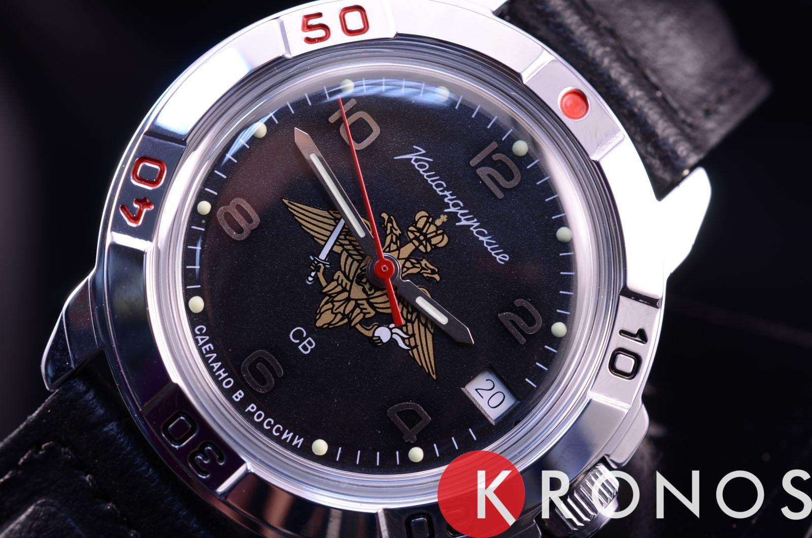Российские механические часы. Корпус из высокопрочной стали с антикоррозийными свойствами. Ремешок из натуральной кожи черного цвета. Циферблат с символикой СВ. Водонепроницаемость часов составляет 3 ATM. Минеральное стекло, устойчивое к появлению царапин.