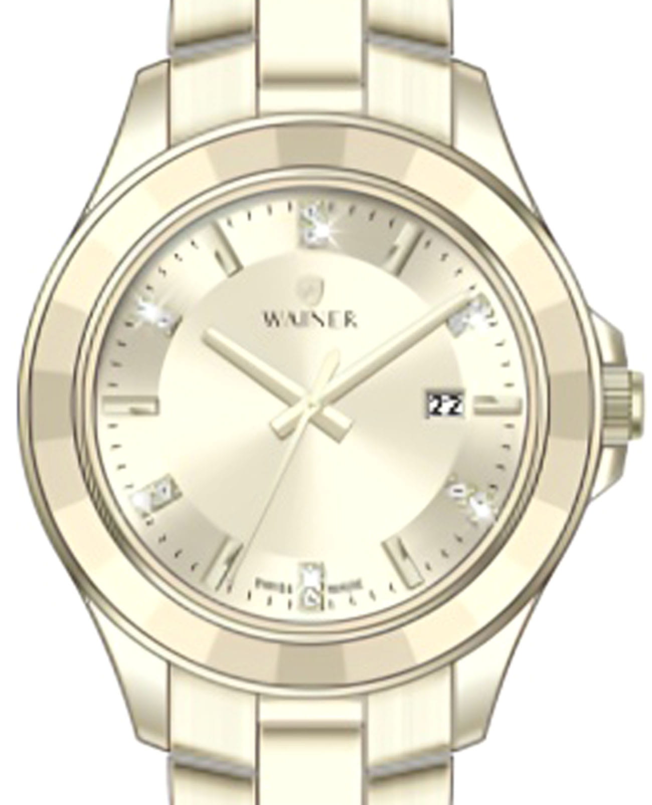 Женские кварцевые часы Wainer WA.18020-F сочетают в себе элегантный дизайн и высокое качество исполнения. Корпус выполнен из гипоаллергенной нержавеющей стали с PVD-покрытиемPVDУльтратонкое покрытие наносится в технике вакуумного напыления, сочетает в себе нитрид титана особой прочности со слоем золота или оксида хрома. Несёт в себе декоративную или защитную функцию. золотистого цвета, диаметром 33 мм и толщиной 8 мм, обеспечивает прочность и долговечность. Циферблат украшен фирменным логотипом Wainer в положении 12 часов и цирконами. Метки в виде штрихов. Минеральное стеклоМинеральное стеклоМинеральное стекло представляет собой искусственно выращенный минерал кварца. Такое стекло отличается особой устойчивостью к повреждениям и царапинам. Уступает по некоторым качествам сапфировому стеклу. с сапфировым напылением защищает дисплей от царапин и механических повреждений. Стальной браслет с PVD-покрытиемPVDУльтратонкое покрытие наносится в технике вакуумного напыления, сочетает в себе нитрид титана особой прочности со слоем золота или оксида хрома. Несёт в себе декоративную или защитную функцию. на застёжке-бабочке с кнопкамиЗастёжка "бабочка"Такой вид застёжки дополняется предохранителями, помогающими избежать случайного раскрытия браслета. Обладают изящным исполнением. обеспечивает комфортное ношение на запястье. Окошко даты находится в положении 3 часа. Водонепроницаемость до 50 метров позволит защитить корпус от случайных брызг или капель дождя. Рифленая заводная головка с защитой. Wainer — это стильный и надежный аксессуар для тех, кто ценит швейцарское качество и современные технологии.